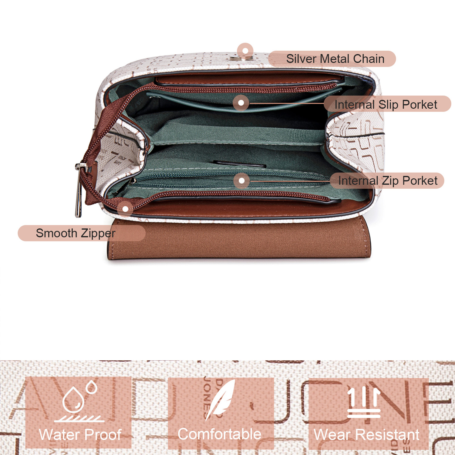 Product feature: 2 main compartments under the cover;1 zipper pocket on the back; 1 internal slip pocket and 1 internal slip pocket