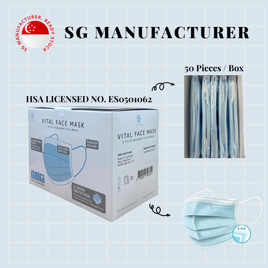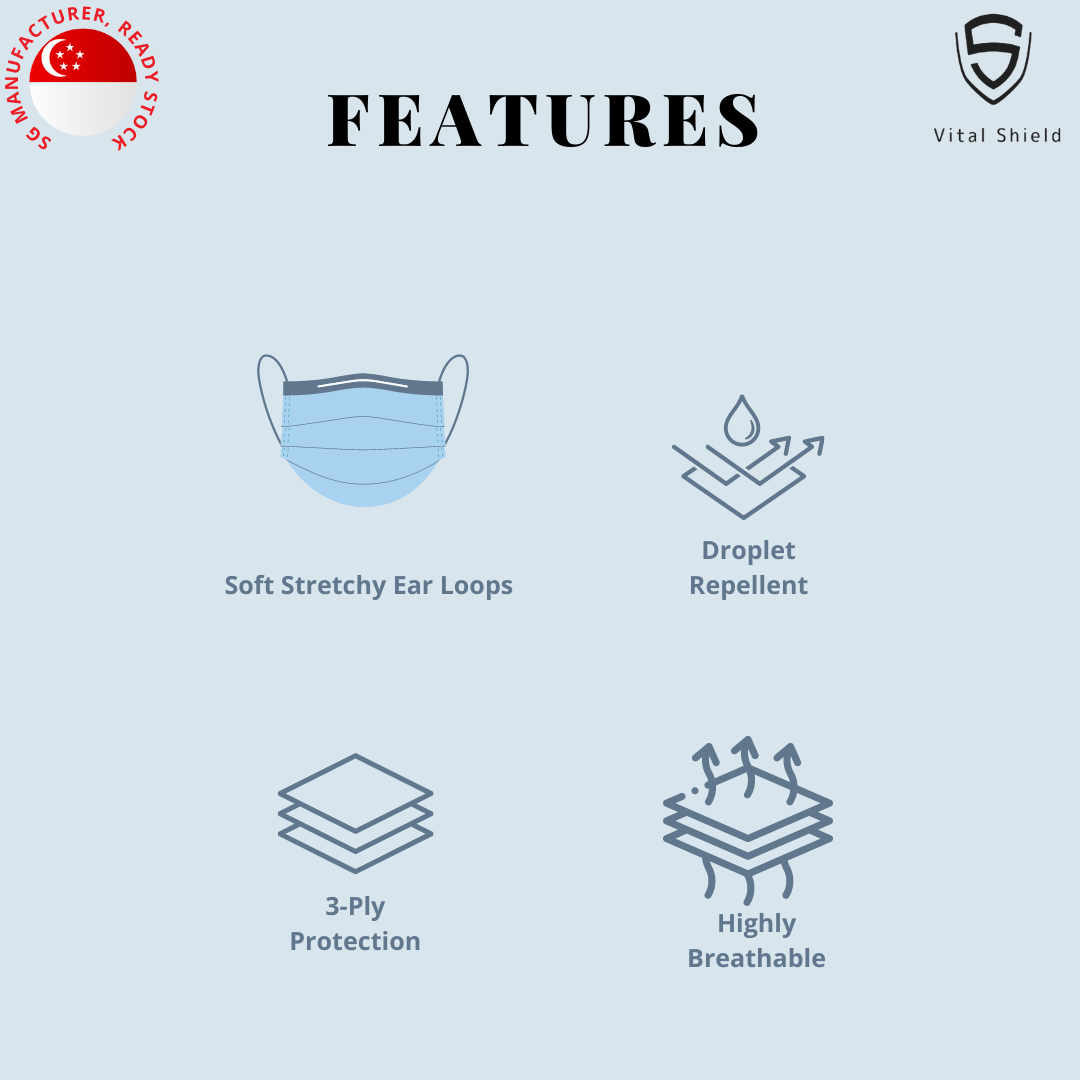 Vital Shield 3-ply Face Mask Made in Singapore (VS50H)