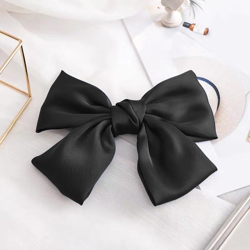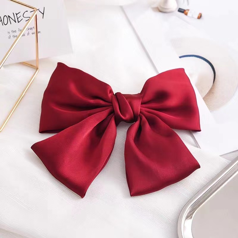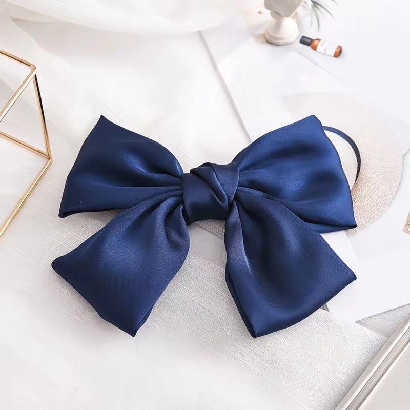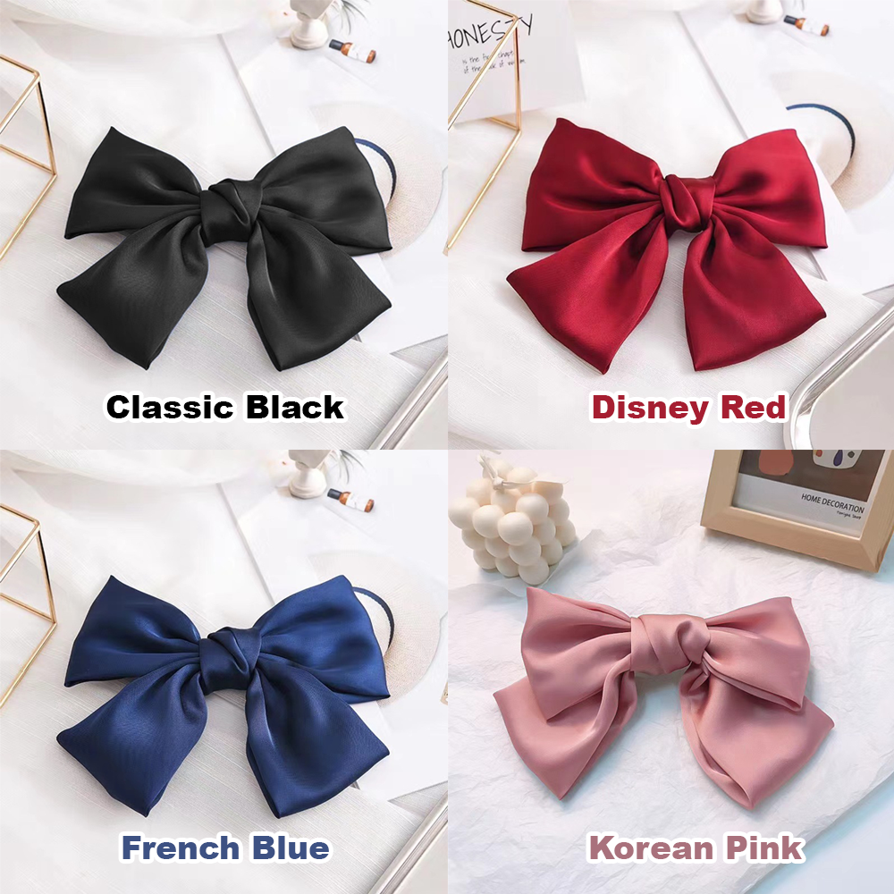 [SG Running Princess] 1-4pc/set 21cm (8 Inch) French Style Big Satin Solid Bow Hair Clips Women Barrettes, for Disney Princess
