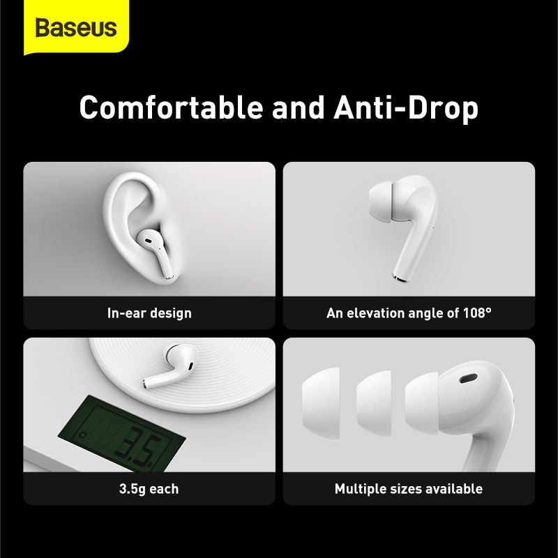 Baseus W3 TWS Wireless Earbuds Bluetooth 5.0 Noise Cancellation In-Ear True Wireless Earphones HIFI Stereo Built-In Microphone IPX5 Waterproof Sports Headset