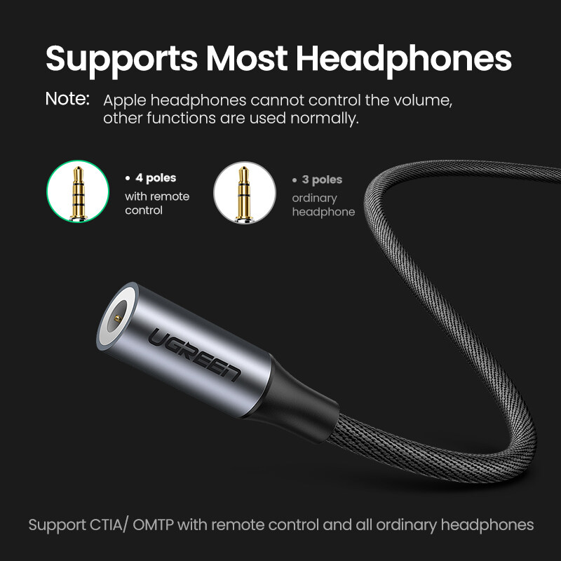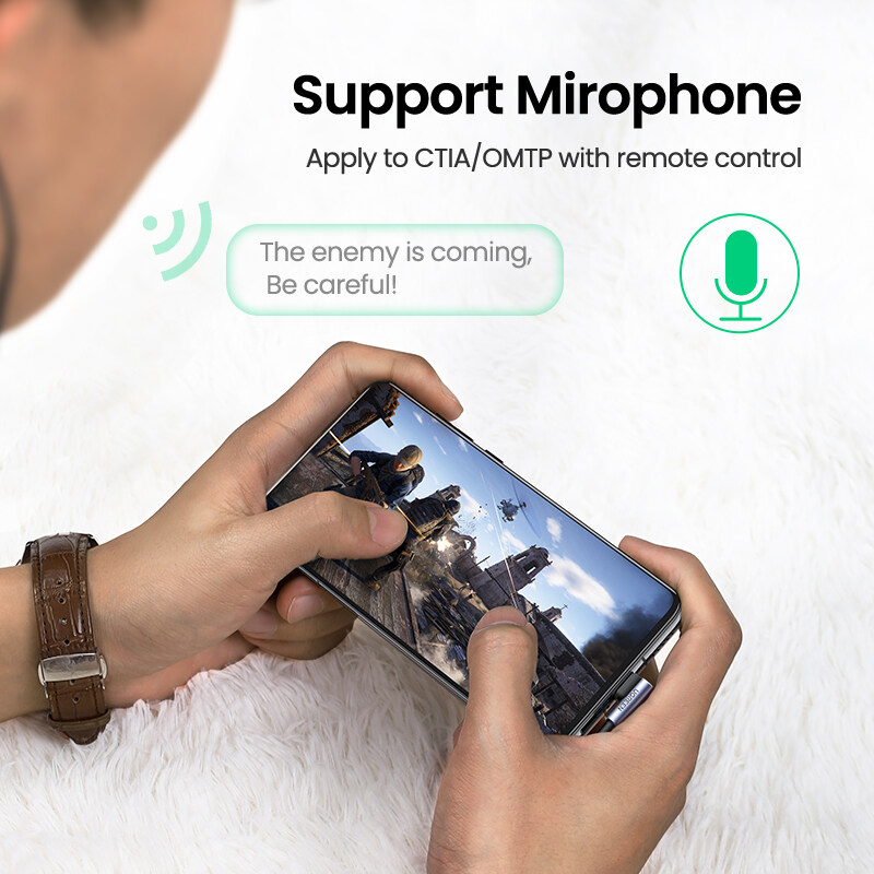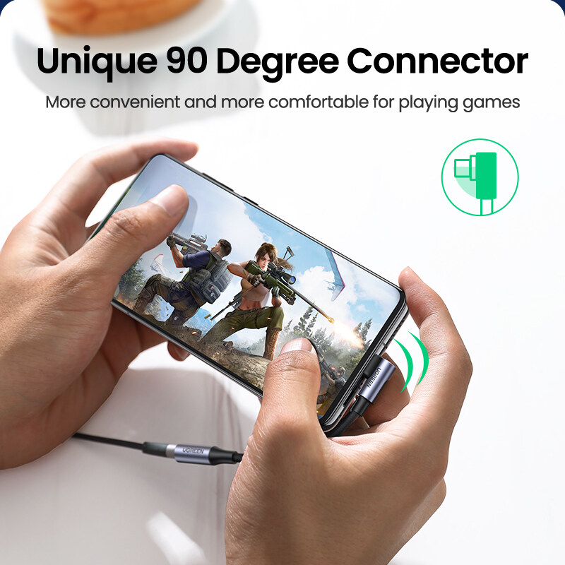 UGREEN 90 Degree Gaming Type C 3.5 Jack Earphone USB C to 3.5mm AUX Headphones Adapter Audio cable For Huawei P40 mate 20