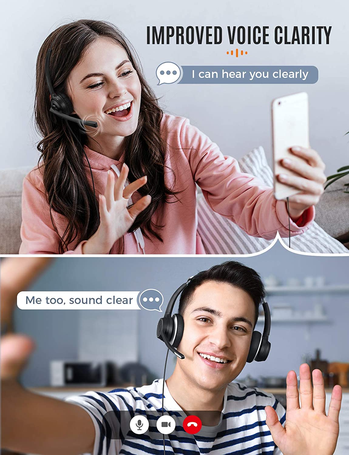 [Mpow] 323 Single-Sided USB Headset with Microphone, Over-The-Head Computer Headphone for PC, 270 Degree Boom Mic for Right/Left Ear, Comfort-fit Call Center Headsets with in-Cord Volume Control