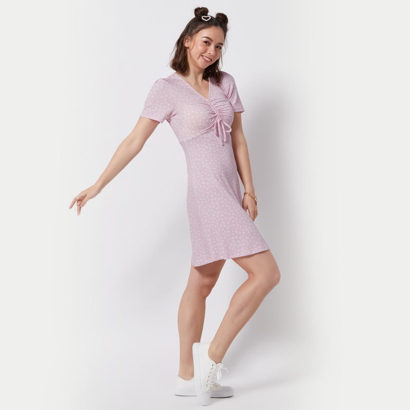 VONDA Women Short Sleeve Solid Color High Waist Skinny Mini Dress Casual Loose Holiday Party Dress (Korean Causal)