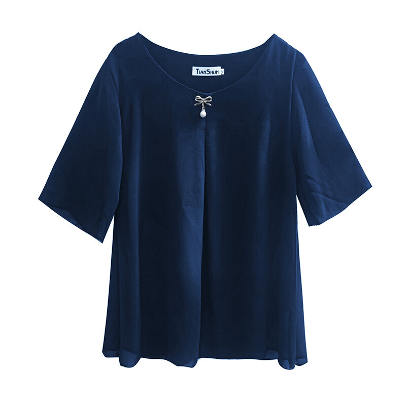 Women's Large Size Chiffon T-shirt for Plump Girls Short Sleeve New Korean Style Loose Belly Covering Slimming Western Style Small Shirt
