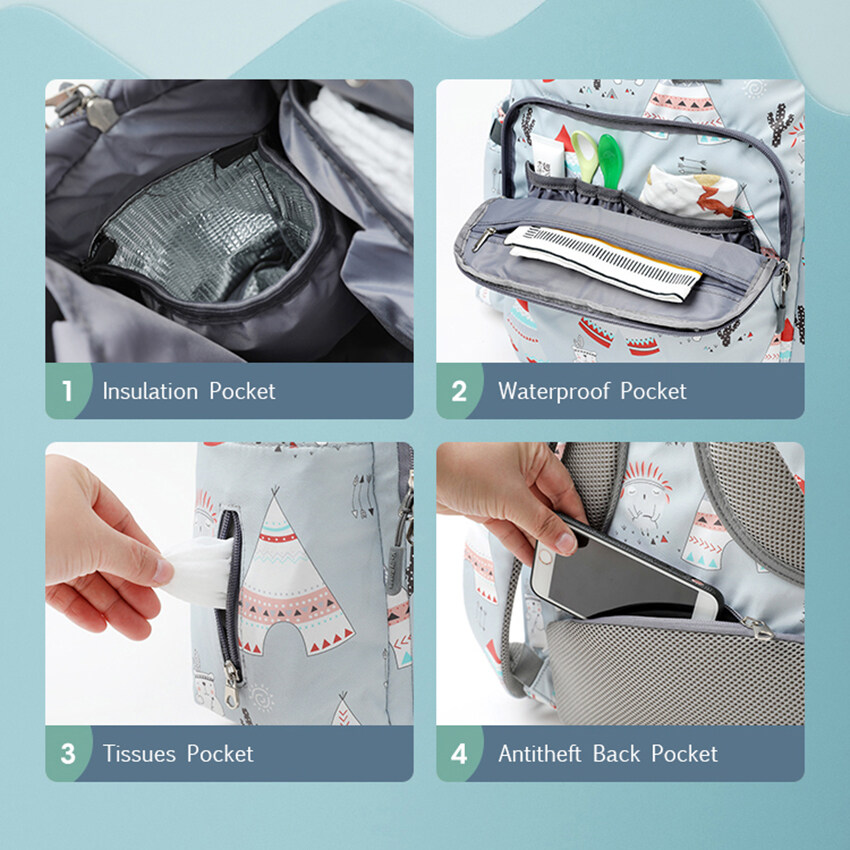 SoHo Kenneth Diaper Backpack comes equipped with 5 accessories: