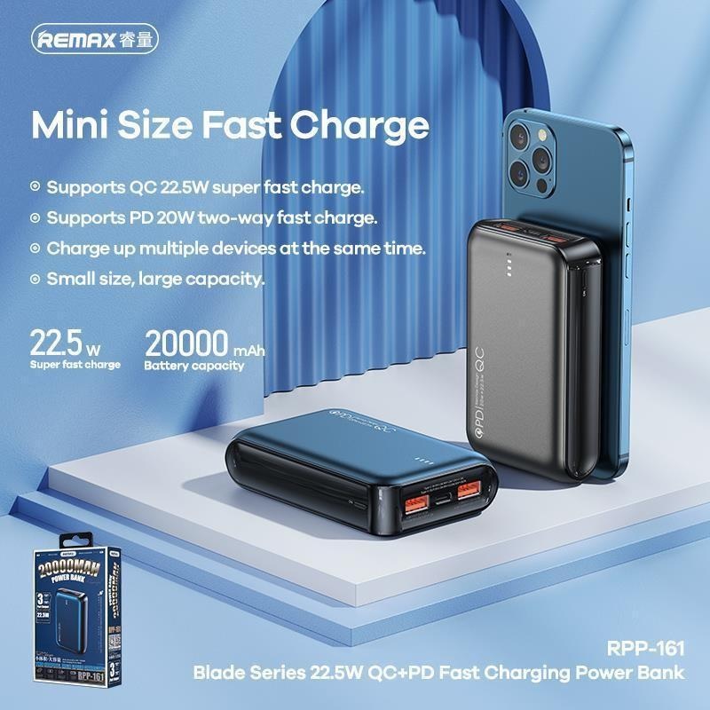 Remax Blade Series RPP-161 Mini Fast Charge Fast Charger 20000mAh Powerbank PD+QC3.0 22.5W Multi - Compatible Fast Charging Powerbank