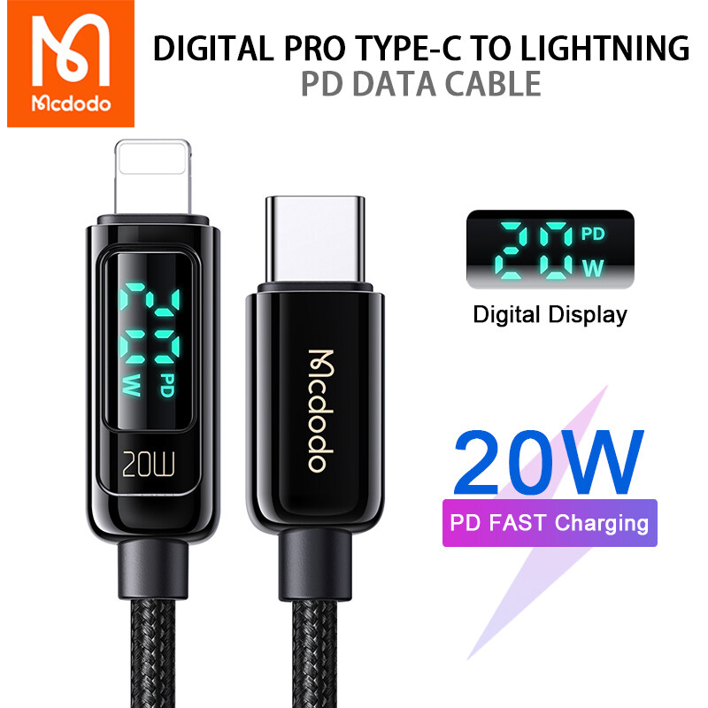 Mcdodo PD 20W USB Type C to Lightning 3A Fast Charging Cable For iPhone 13 12 11 Pro Max X XS 8 iPad Pro Digital Display Data Cord