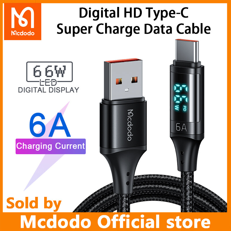 Mcdodo 66W USB Type C 6A Super Fast Charging Cable For Huawei Xiaomi Samsung QC Flash Charge VOOC AFC FCP Digital Display Data Cord