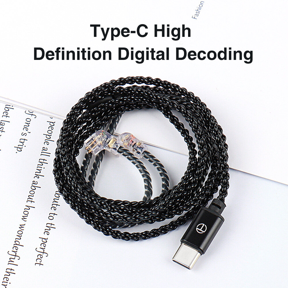 TRN A6 Type-C Earphone Upgrade Cable High Definition Digital Decoding Earbuds Upgraded Line 2Pin HiFi Headphone Replacement Cable Upgrate Headsets Wire For KZ ZSN AS16 DQ6S EDS EDA EDX ZS10 Pro GK GS10 G5 CCA CRA CA16 Pro TRN MT1 Pro Earphones Accessories