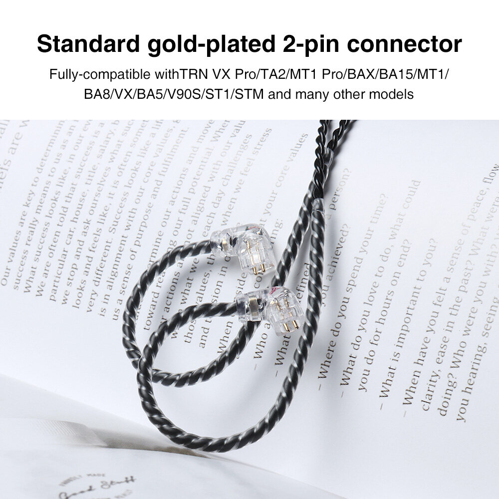 Product Name: TRN A6 Colours:Black Connector types: 2-pin (S-type) Cable weight:13g Cable configuration: 4 cores woven with 14 strands each, every individual strand consists of 56 wires. Length:1.2m+3cm Jack types:Type-C Fit :Over-ears with soft ear loops ●Actual product specifications may vary, and all features, functinality and Parameters