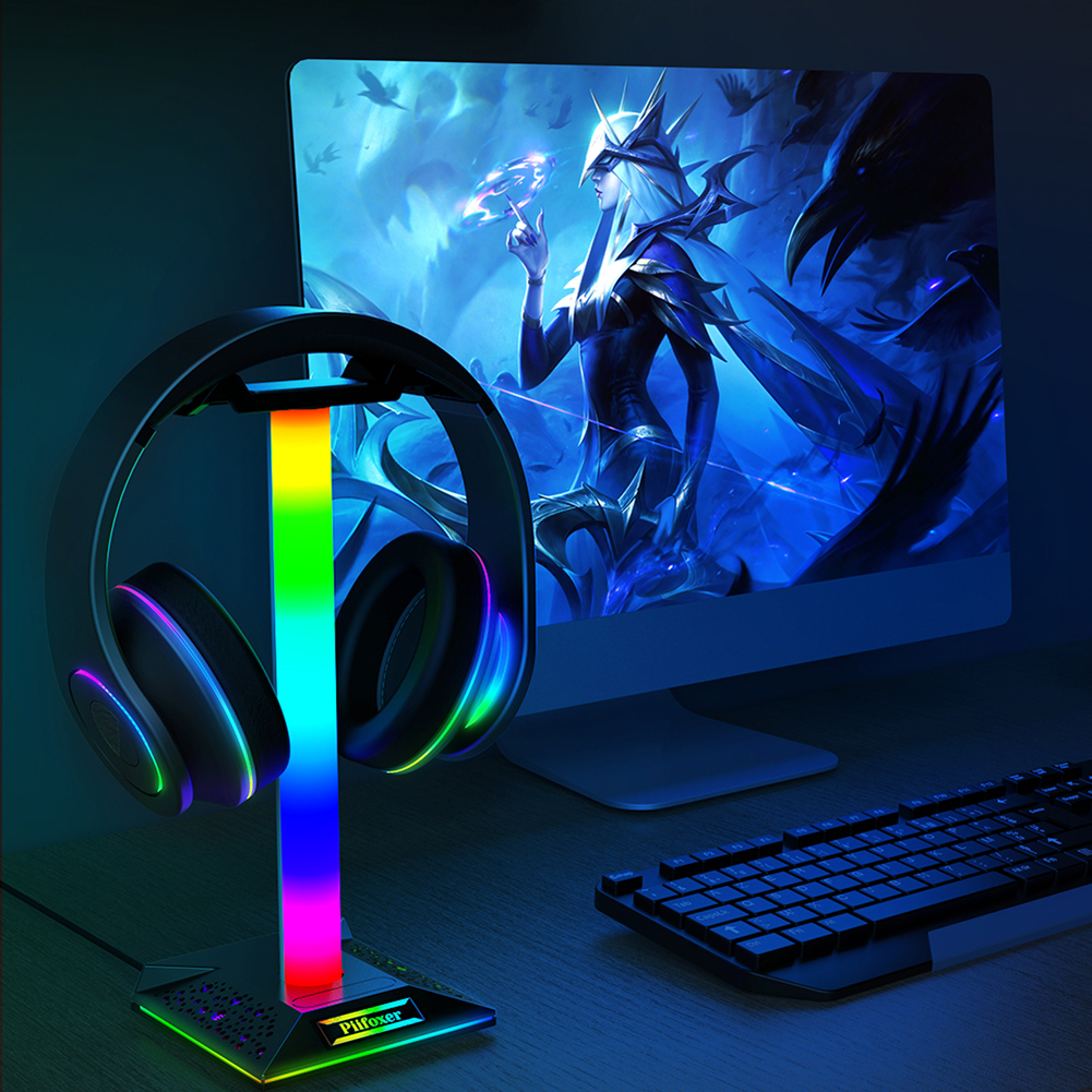 【itechcool】♬ RGB Headphones Stand Holder Gaming Headset Desk Bracket with 3.5mm 2 USB Ports