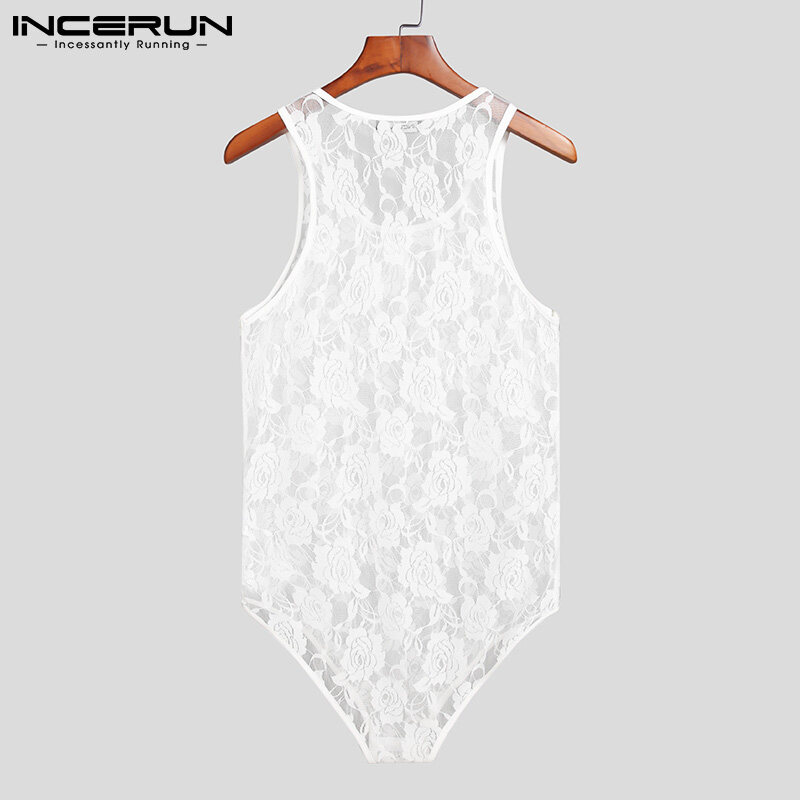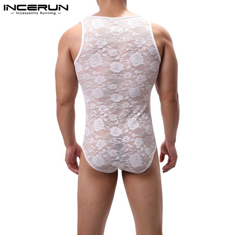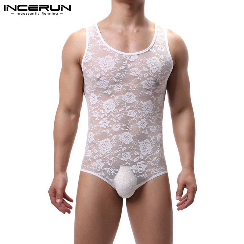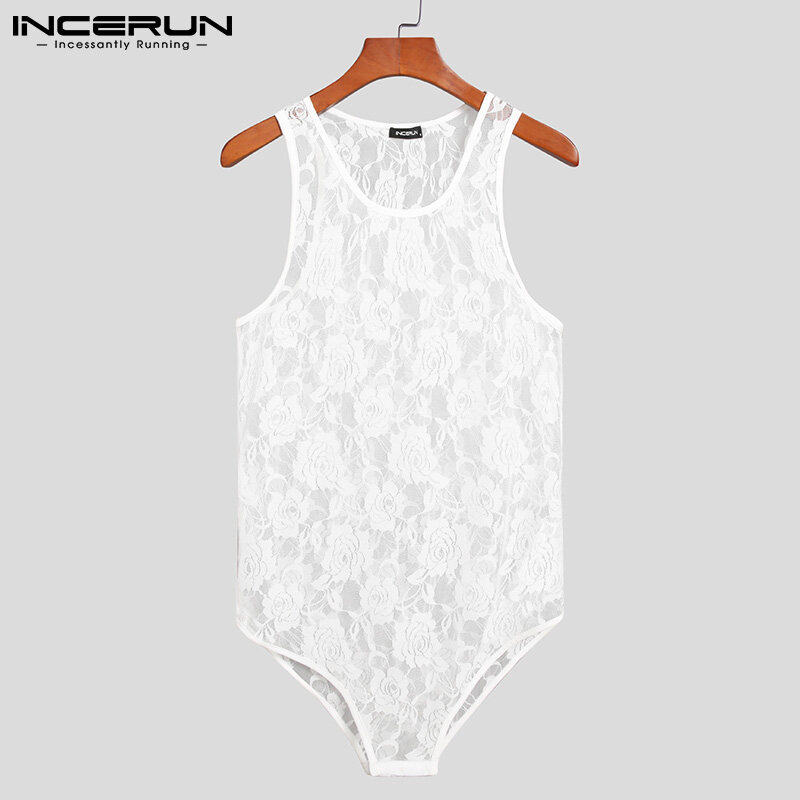Beehoo INCERUN Men Mesh Sheer Bodysuit Playsuits Vests Gym Tank Panties Romper Underwear Shorts