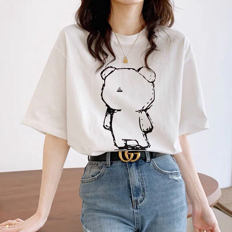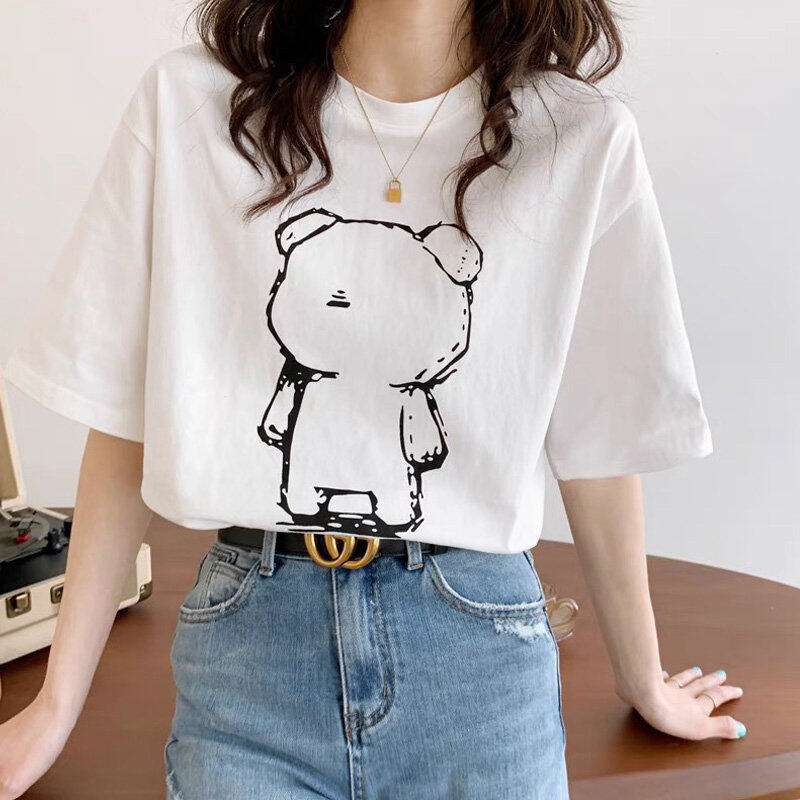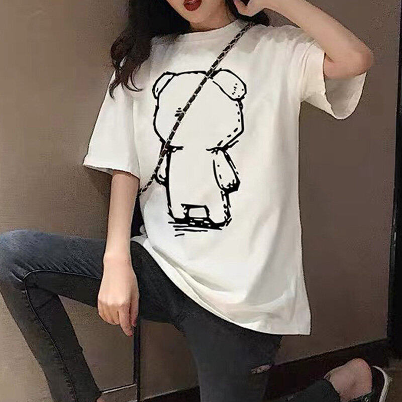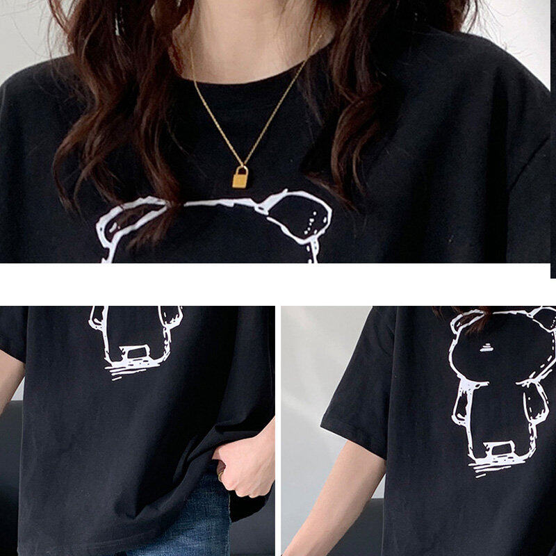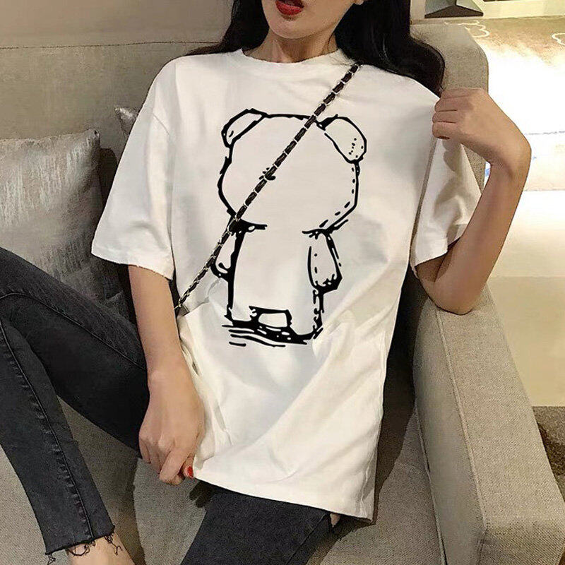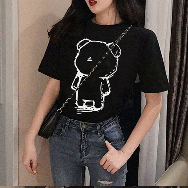 • INWPLLR New Women Tshirt Bear Printed Tops Korean Fashion Funny T-Shirts Female Casual Summer Short Sleeve Tops Plus Size​​​​​​