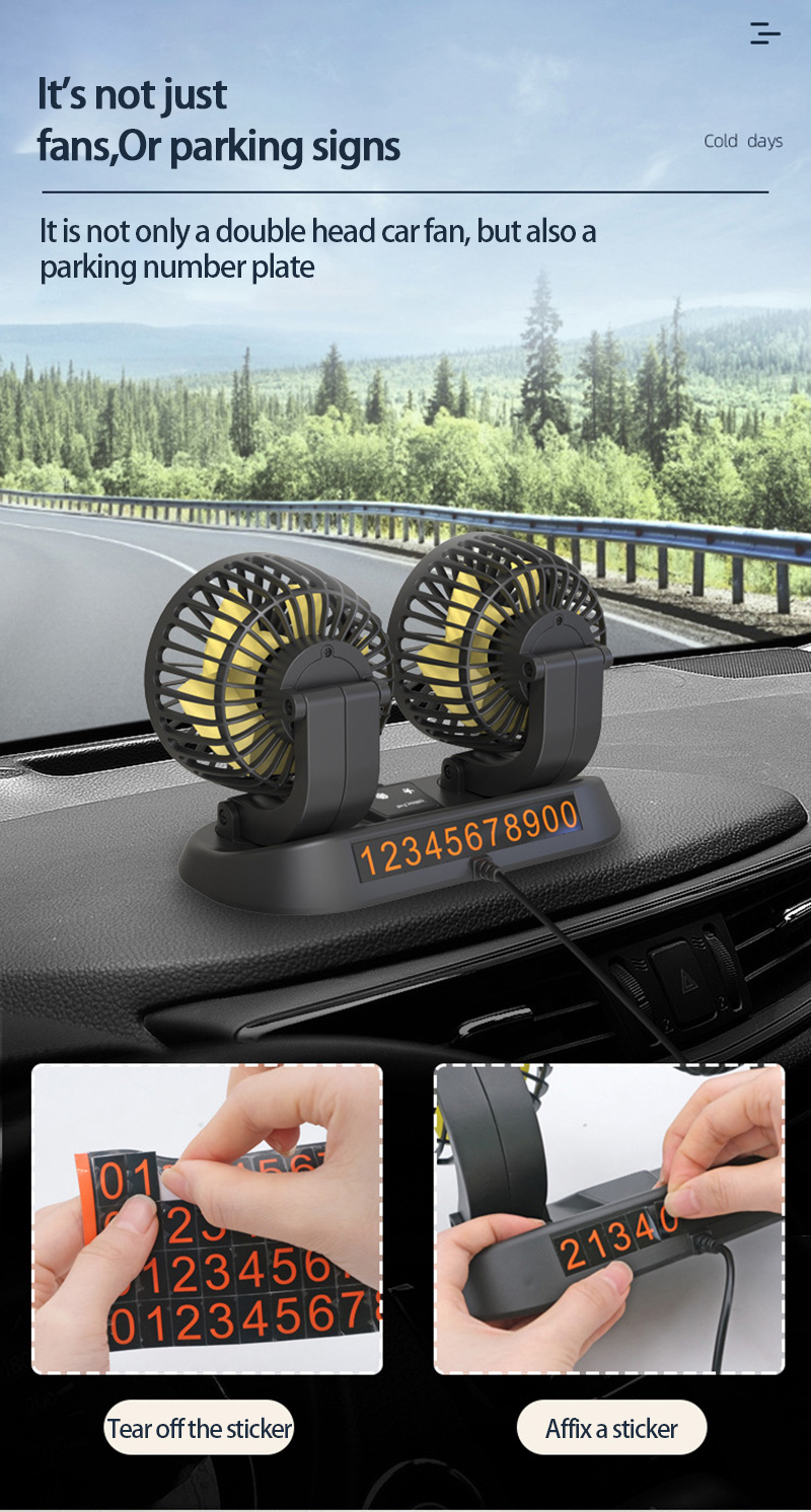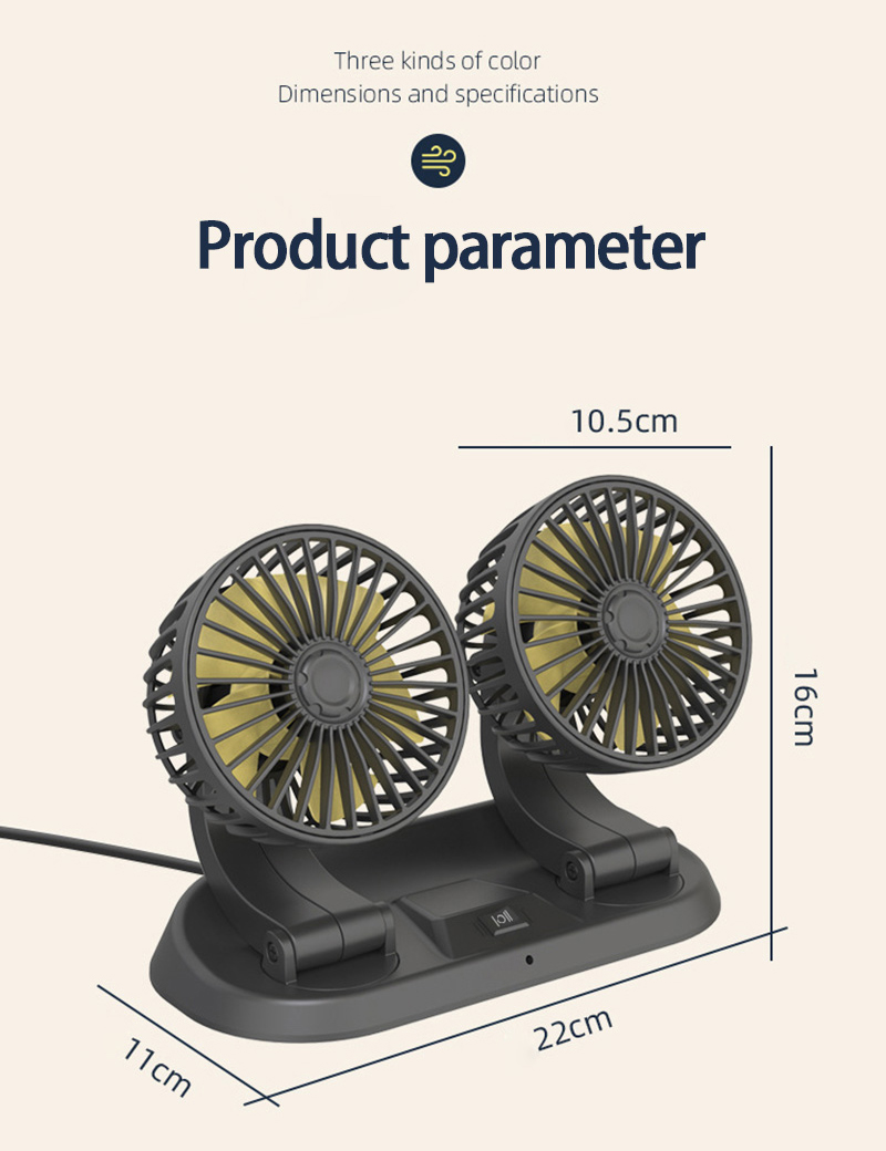 Car Fan 24V/12V Car Cooling Fan Truck Strong Wind Double-head Can rotate 360° USB Fan