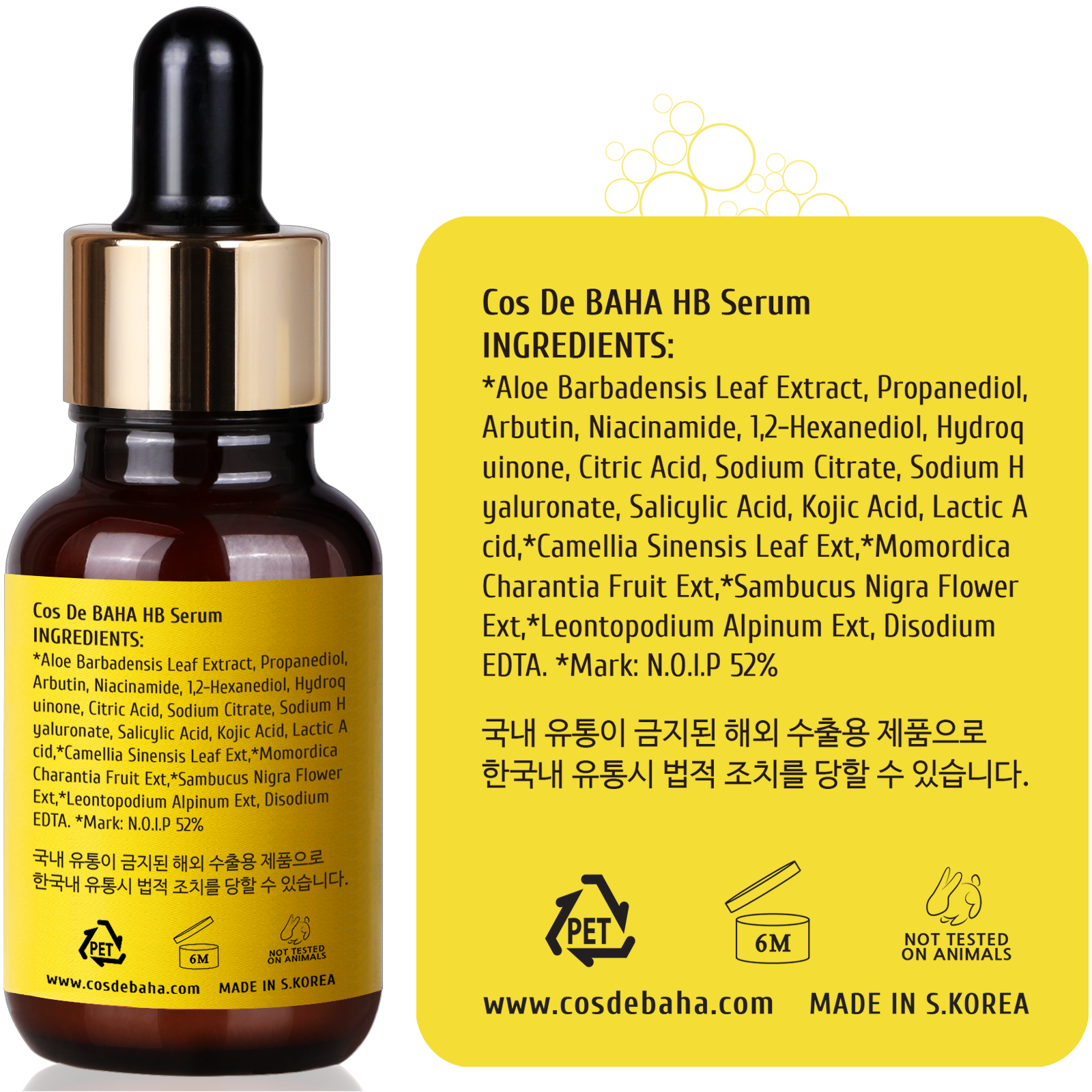 Cos De BAHA - HB serum 30ml (Dark Spot Corrector Remover)/ - HB serum Albutin4% + Niacinamide 4% Serum - Dark Spot Corrector Remover + Melasma Treatment, 30ml