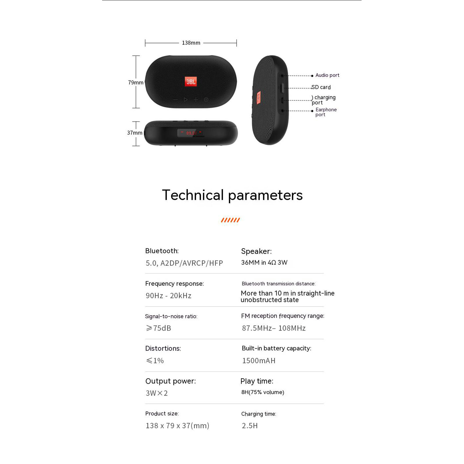 Description: Name: Bluetooth Speaker Features: 1. Never miss a beat thanks to the ultra-stable BT connection, connects easily and sounds great with your smart phone and all other BT devices. 2. Built-in 4800mAh lithium polymer battery for longer battery play-time, giving you up to 6-12 hours of non-stop music. Packing list: 1*Bluetooth Speaker Note: Due to different personal displays, light and contrast differences, there may be slight color difference between the picture and the real object.