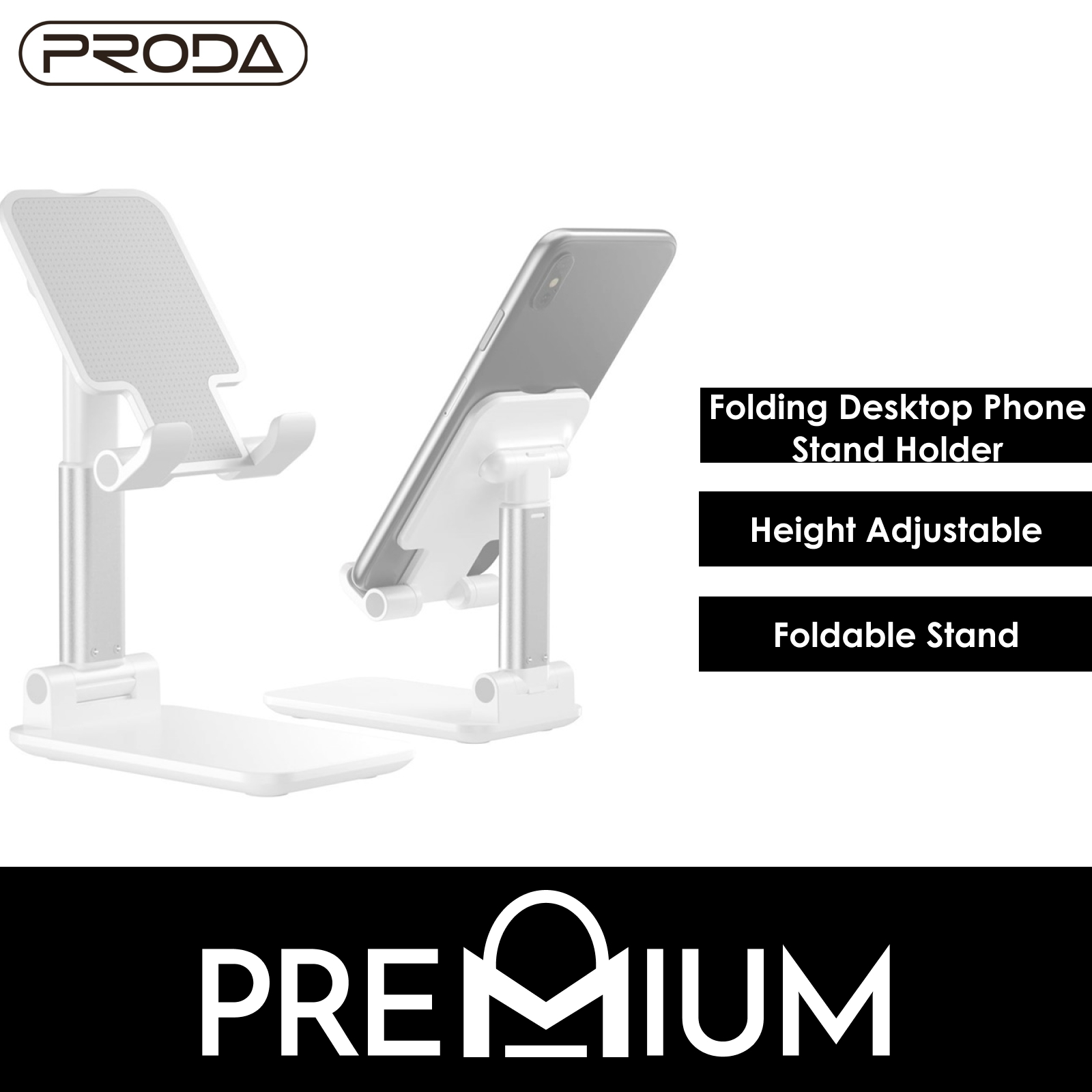 PRODA PD-C06 Folding Desktop Phone Stand Holder Compatible with Phone iPhone 13 12 Pro Max Mini 11 Pro Max Xs Xr 8 7 6 6S Plus Samsung S10 S9 S8 Note 10 9 8 Huawei P30 P20 Mate 20 OPPO Reno Z R17 R15