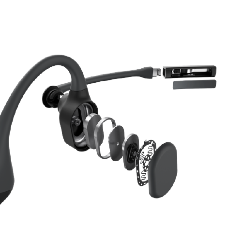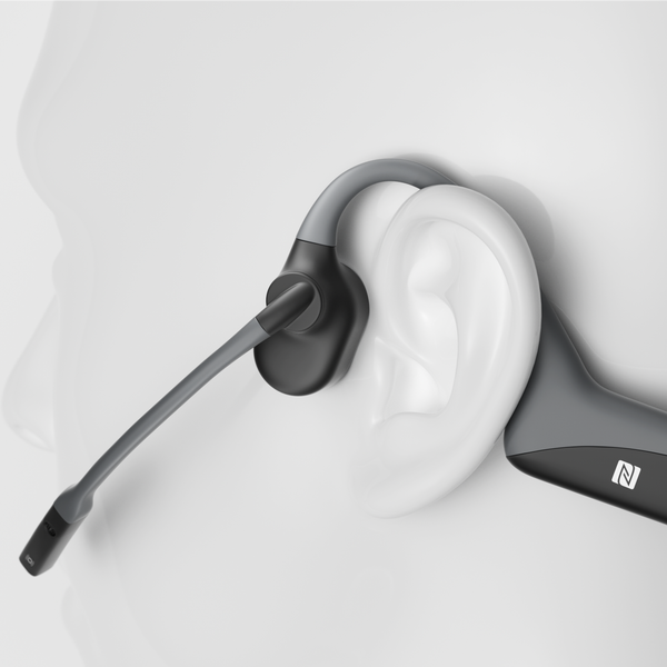 OpenComm features a lightweight, open-ear design powered by bone conduction tech for all-day comfort. Unlike traditional headsets, our wireless headset allows for communication & awareness in the workplace.