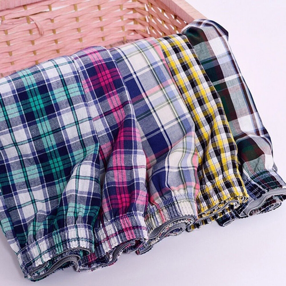Casual Plaid Print Elastic Waist Men Underwear Summer Beach Pants Boxers Shorts