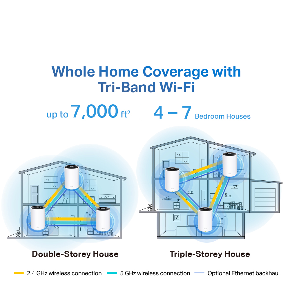 TP-LINK Deco X68 AX3600 Tri Band Gigabit OFDMA MU-MIMO WiFi 6 AI-Driven Mesh Router (Whole Home Mesh WiFi 6 System) Works with all Telcos (Supports IPTV)