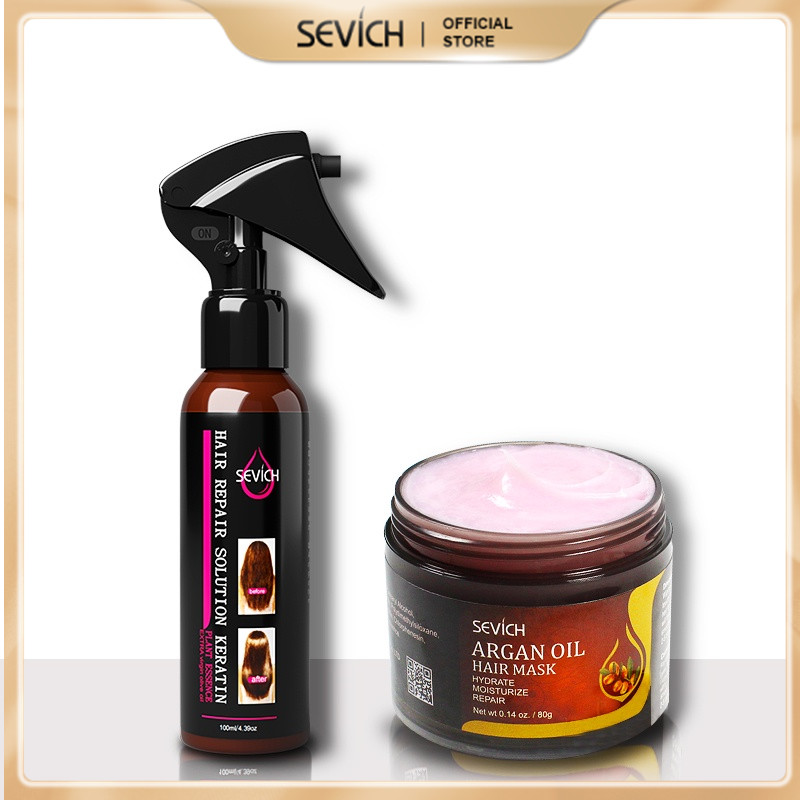 SEVICH Hair Care Set Argan Hair Conditioner Mask & Leave-in Keratin Hair Serum Spray Repair Damage Hair