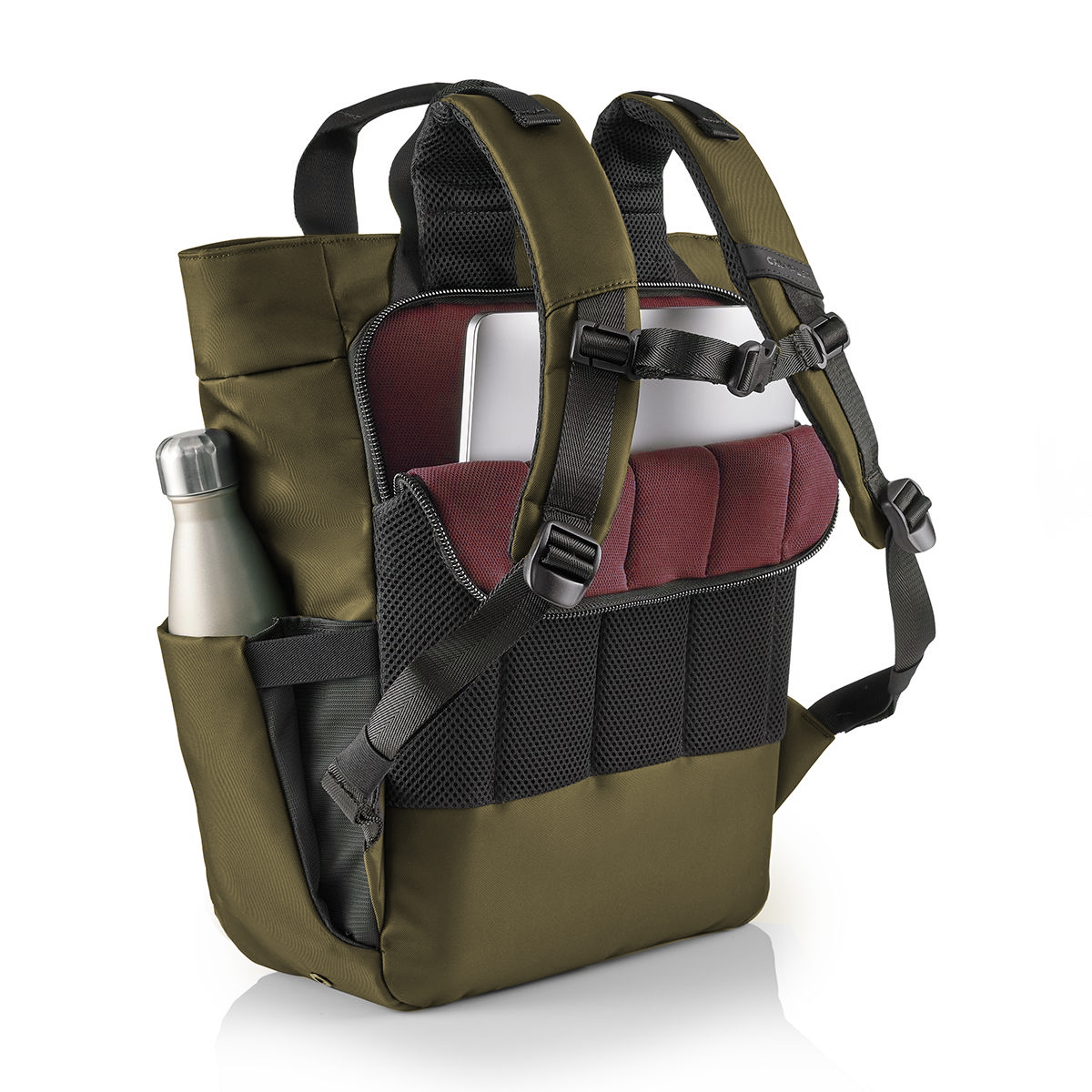 The Art Collective 15' totepack combines the simplicity of a tote with the comfort of a backpack. It's the perfect size to fit all your essential items for a day out, and it doubles as a stylish work bag, nappy bag or overnight bag. Wear it three ways -backpack, over shoulder and cross body. Plus, it also come with clips to attach the bag to the stroller frame when you need your hands free.