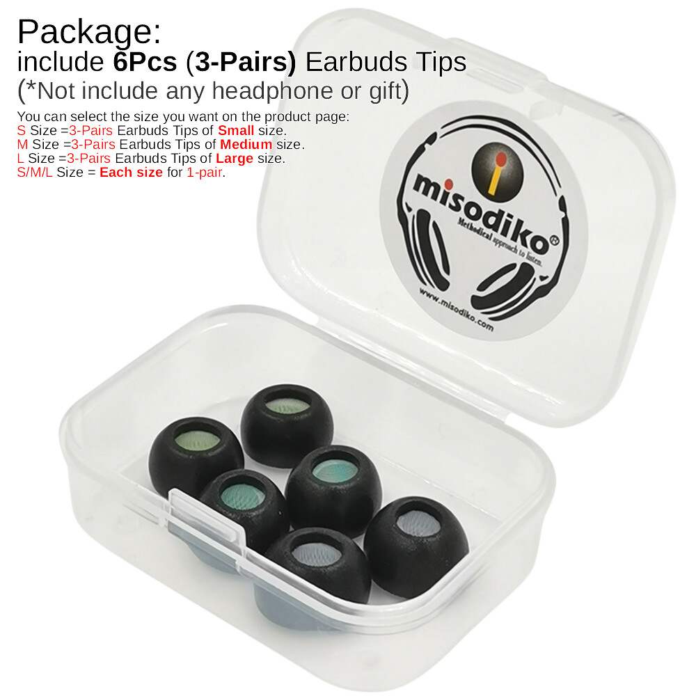 Package includes : 3-Pairs Earbuds Tips (Not include any headphone).