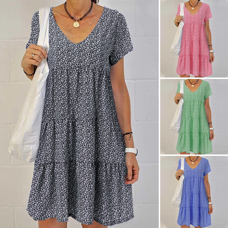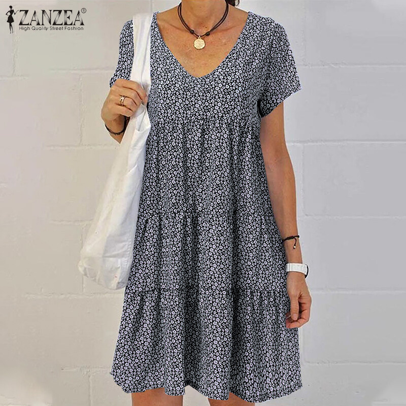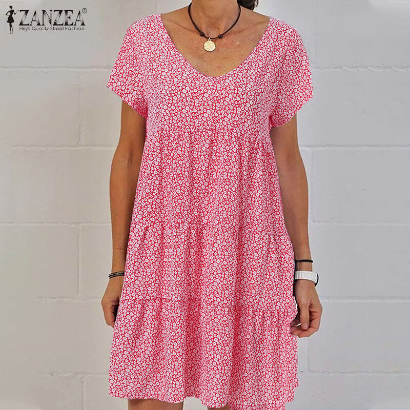 ZANZEA Womens Casual Holiday Mini Shirt Dress Floral Print Tiered Loose Sundress
