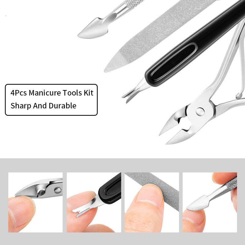 [Good Quality]1/4Pcs/Set Nail Art Nippers Clipper Cuticle Spoon Pusher Dead Skin Remover Fork Nail Files Trimmer Manicure Care Tools