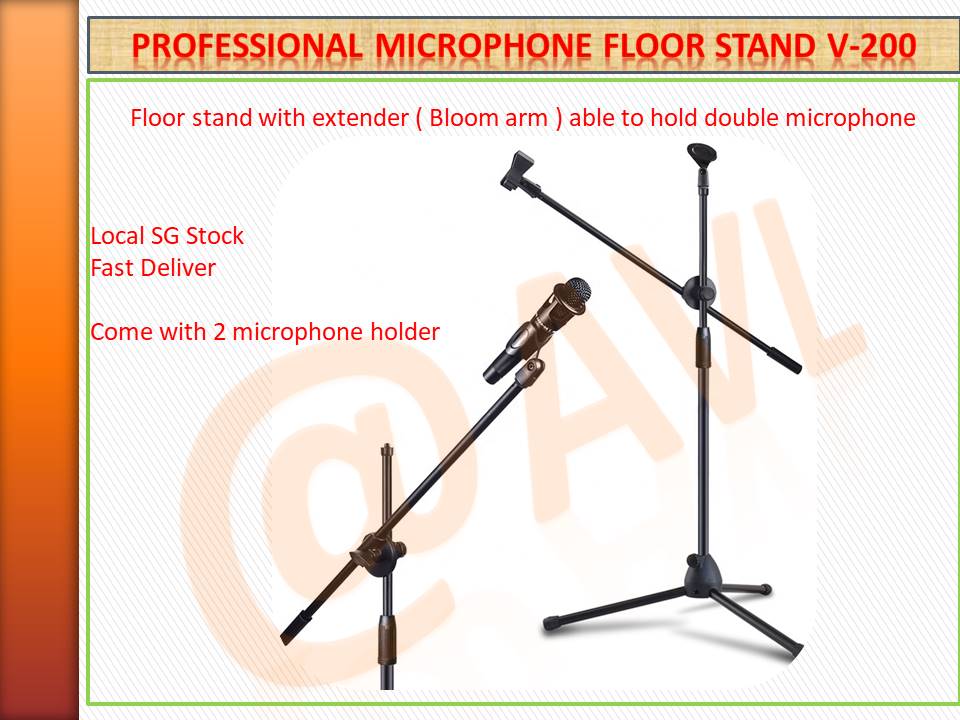 Professional Microphone floor stand , Bloom Arm included , able to hold up to 2 microphone , come with 2 microphone holder , LOCAL SG STOCK , FAST DELIVERY