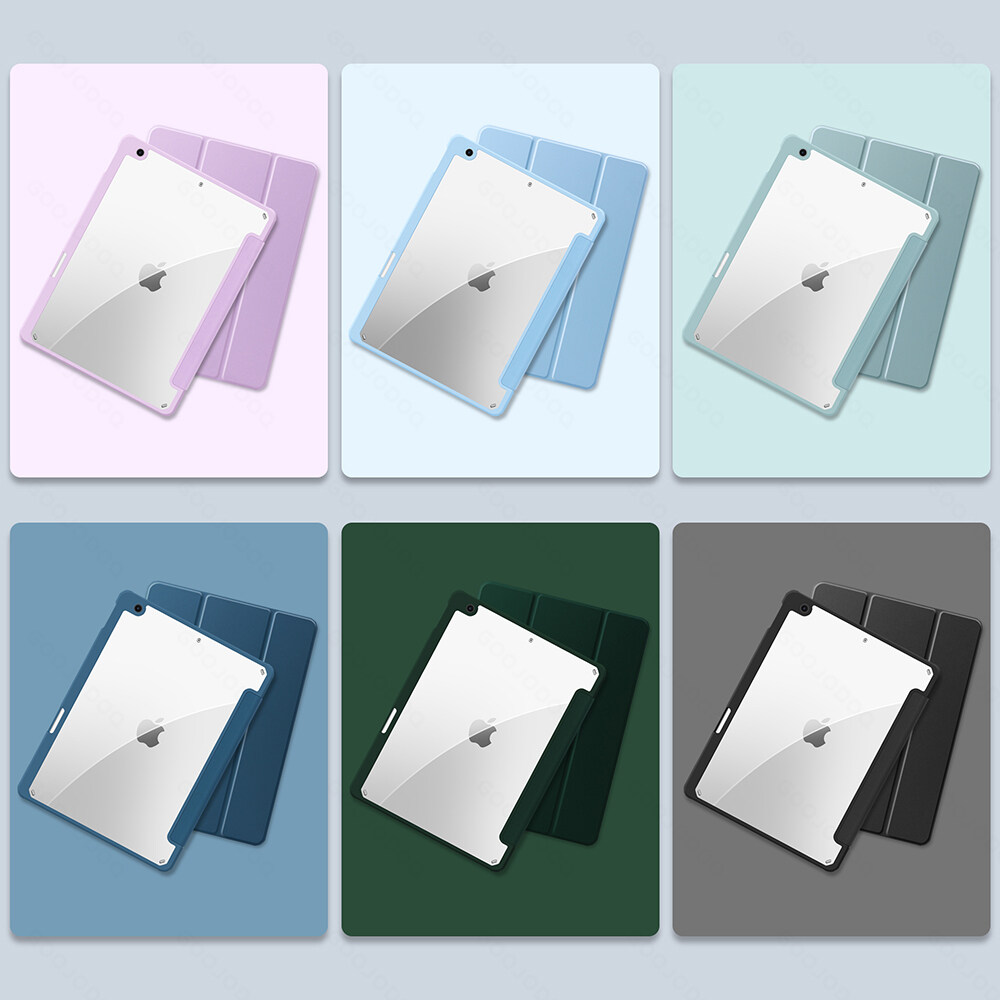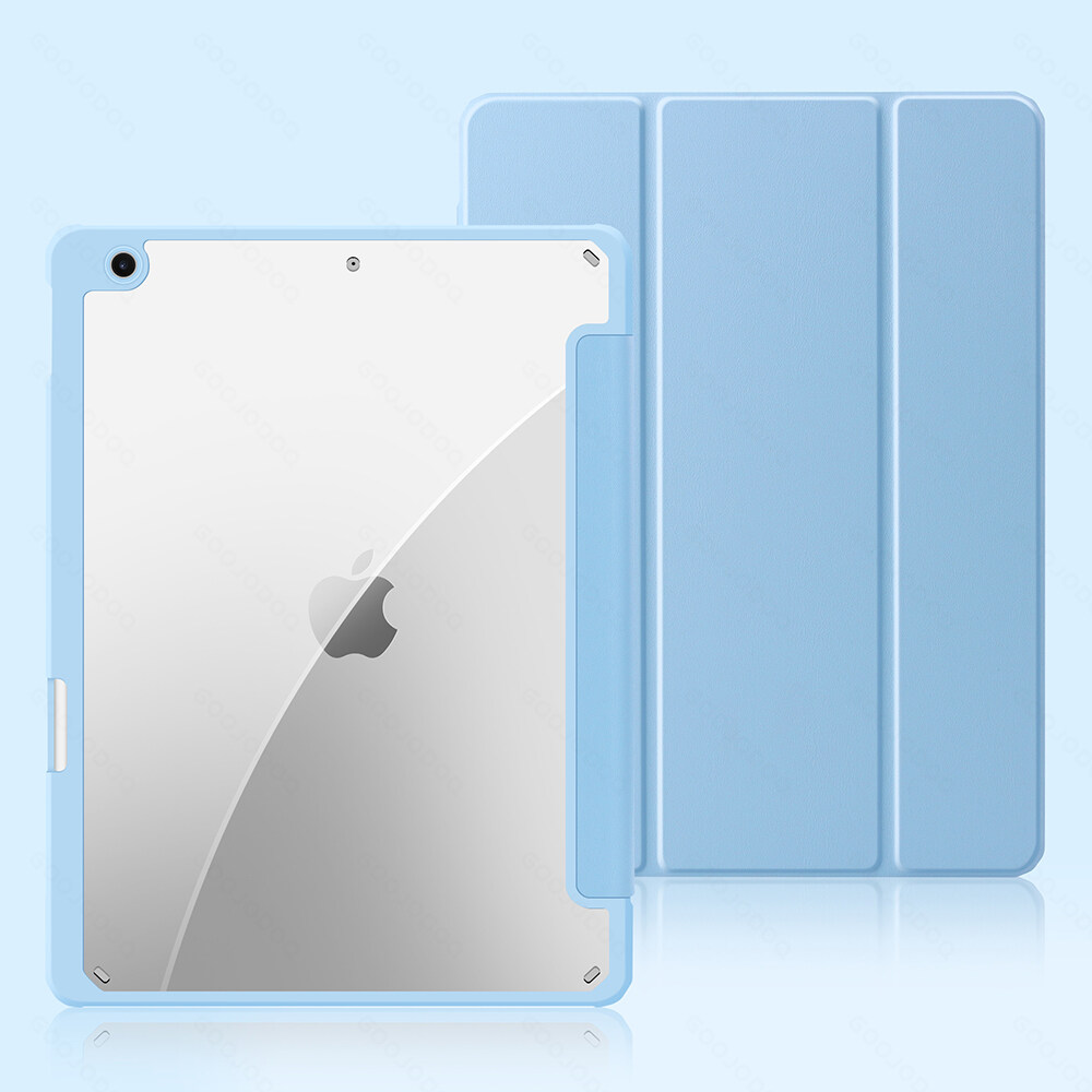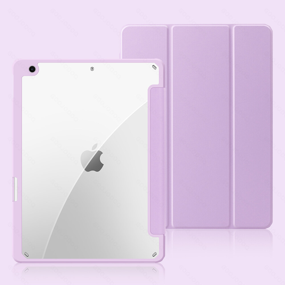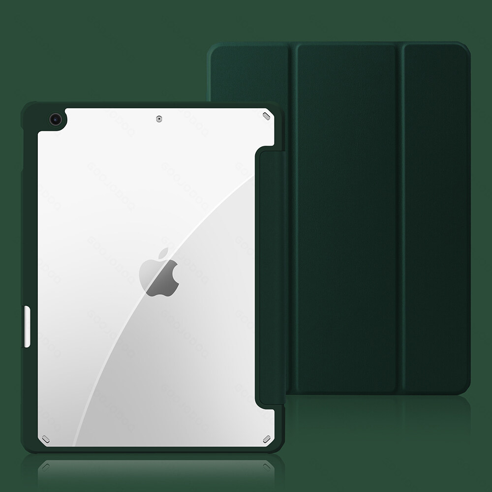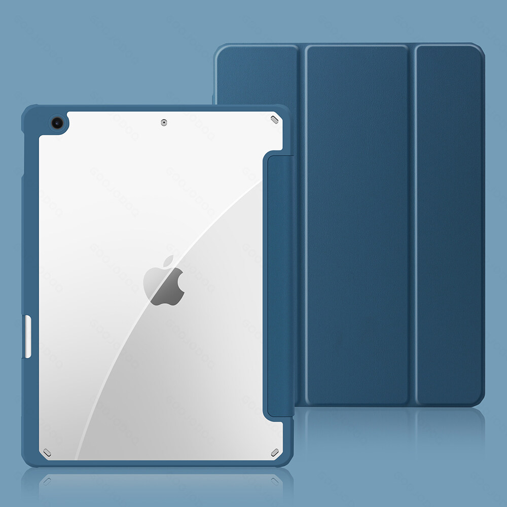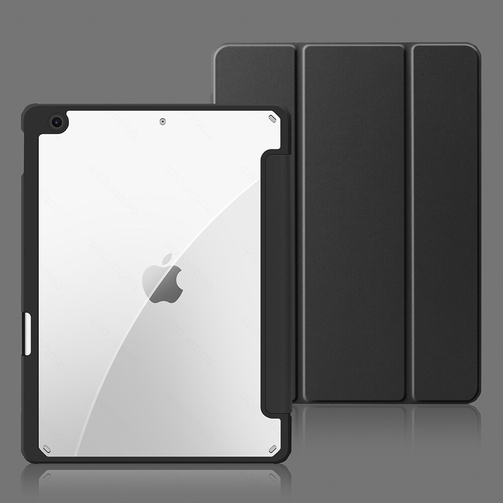 GOOJODOQ For iPad Air 4 Case With Pen Holder Pen Slot (No Pen) iPad 7th Gen iPad 8th Gen Case 2020 Shockproof Plexiglass Back