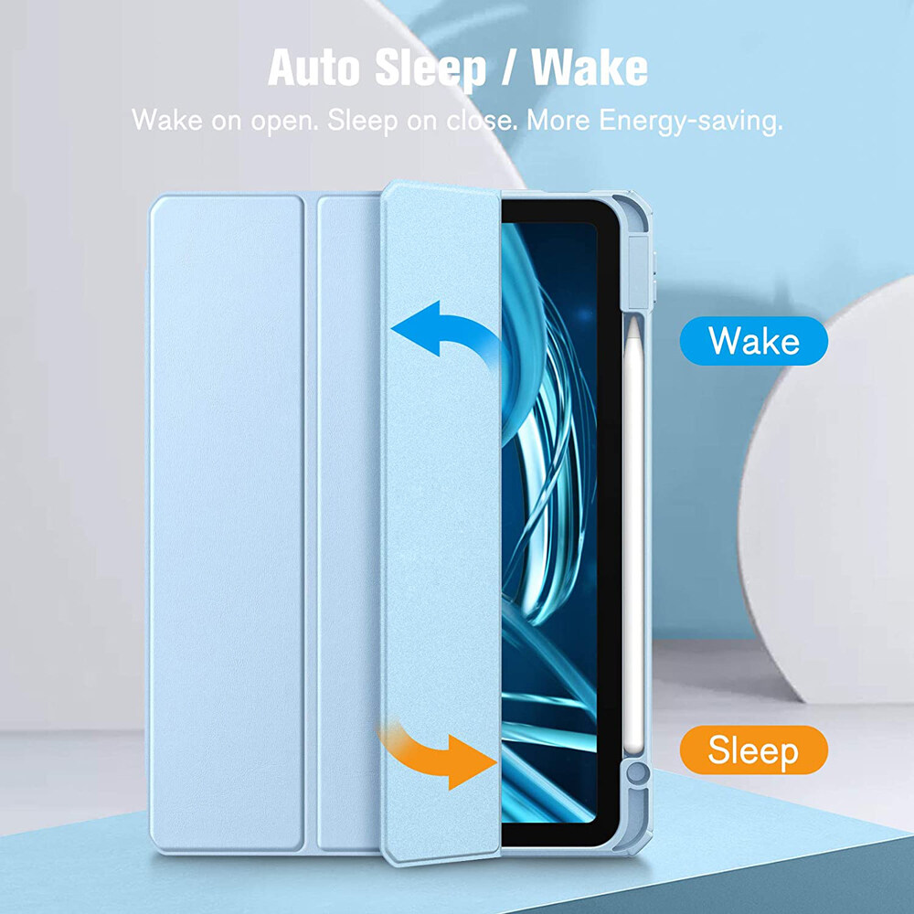 Magnetic smart cover supports auto wake & sleep function.Powerful magnet secures the case closure, easy to snap on and off.