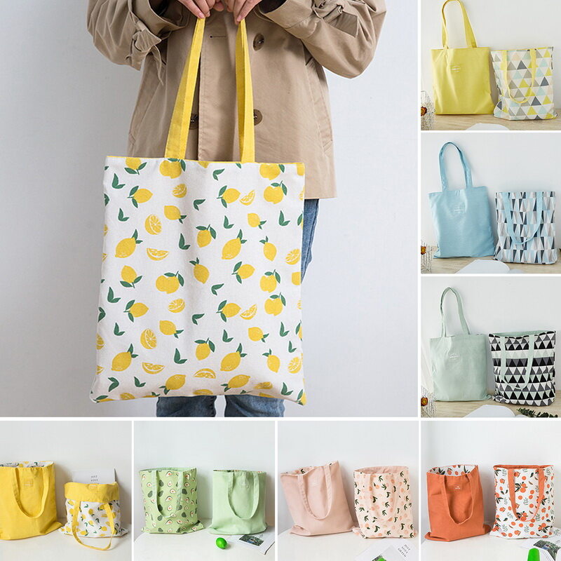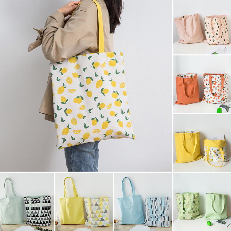 Ladies Handbags Cloth Canvas Tote Bag Double Side Use Canvas Bag Floral Letters Pattern Shopping Travel Women Reusable Mama Shopper Bags Classic