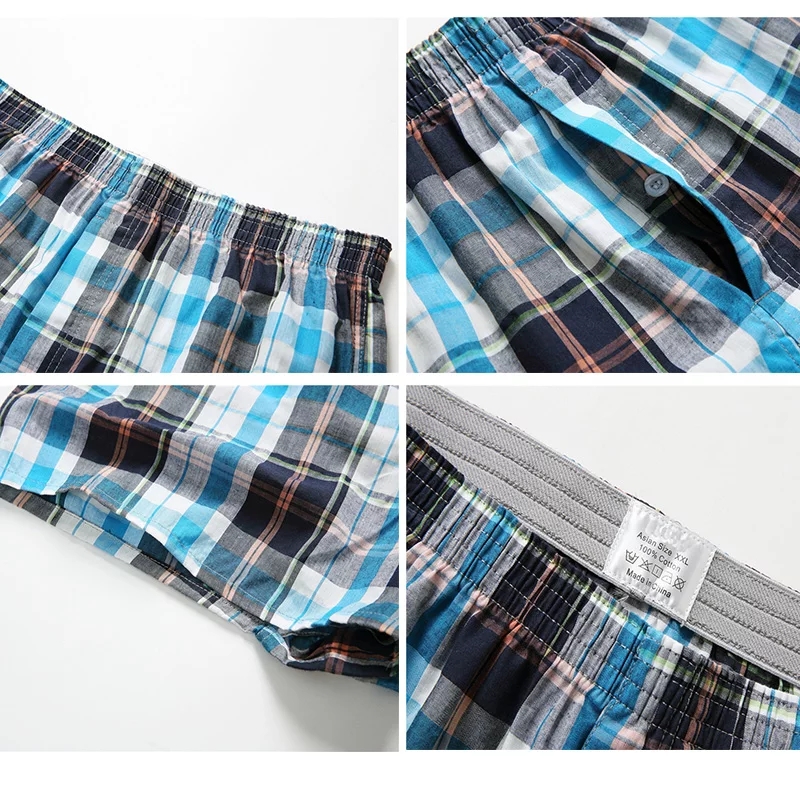 (SG Seller)3Pcs Men Cotton Underwear Plaid Printing Boxer Underwear Plus Size Casual Elastic Waist Beach Pants Boxer Shorts Male Panties Sleep Bottoms Men Home Wear Pajamas Wide Leg Shorts M-6XL