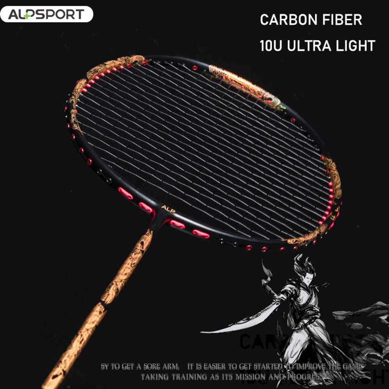 ALP Golden Dragon Ultralight 10U 52G 100% Carbon Fiber Badminton Rackets Strung Professional Racquet 22-30LBS G4 Trainning Racket Bags Adult