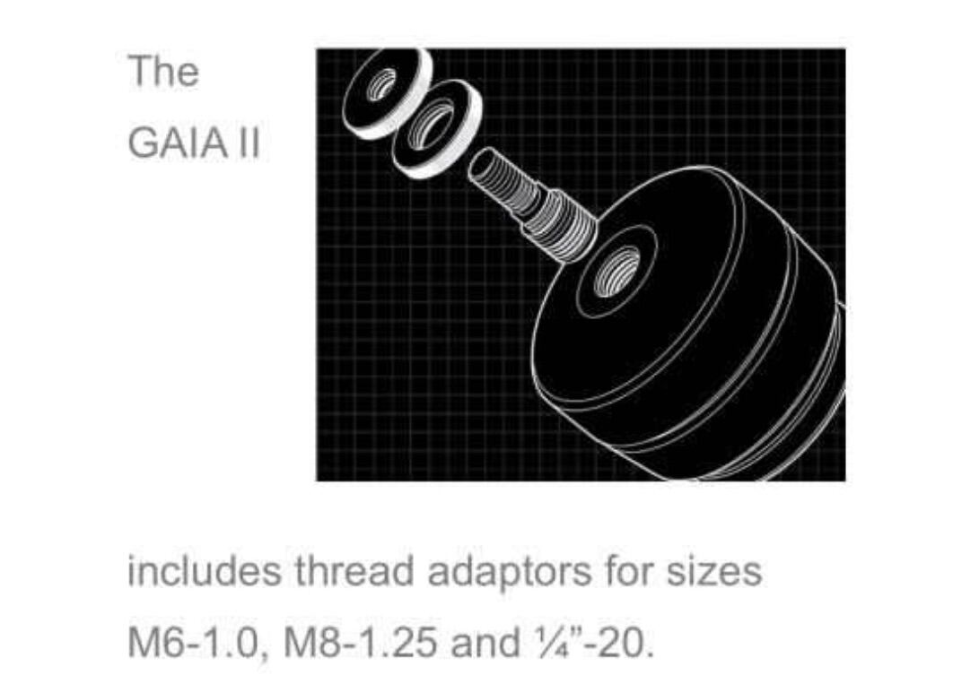 GAIA II is designed for floor standing speakers and subwoofers weighing up to 120 lbs (54Kg). Finished in an elegant machined dark chrome metal housing, the GAIA II incorporates IsoAcoustics’ patented design principles to deliver extraordinary acoustic results. GAIA II provides a high degree of isolation while resisting lateral movement and oscillations to maintain alignment with the listening position. Internal reflections from the hard-supporting surface are attenuated resulting in greater sound clarity and openness.