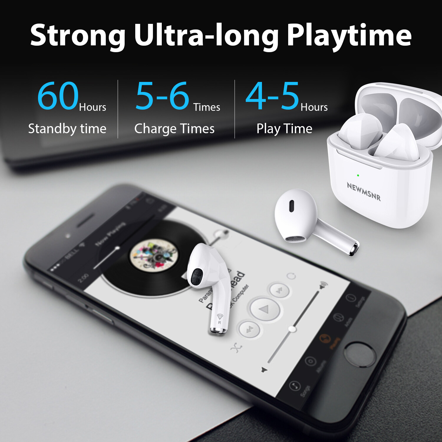 Newmsnr 9D HiFi Bass Bluetooth Earphone Built In Mic Wireless Earphones Mini Size Headphones Touch Control Headset IPX5 Waterproof Earpods Noise Cancelling Earbuds For Samsung /Xiaomi/ Huawei /Oppo/Vi