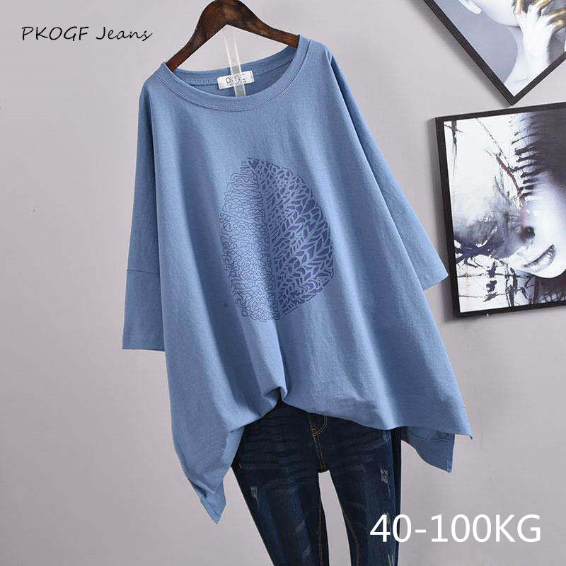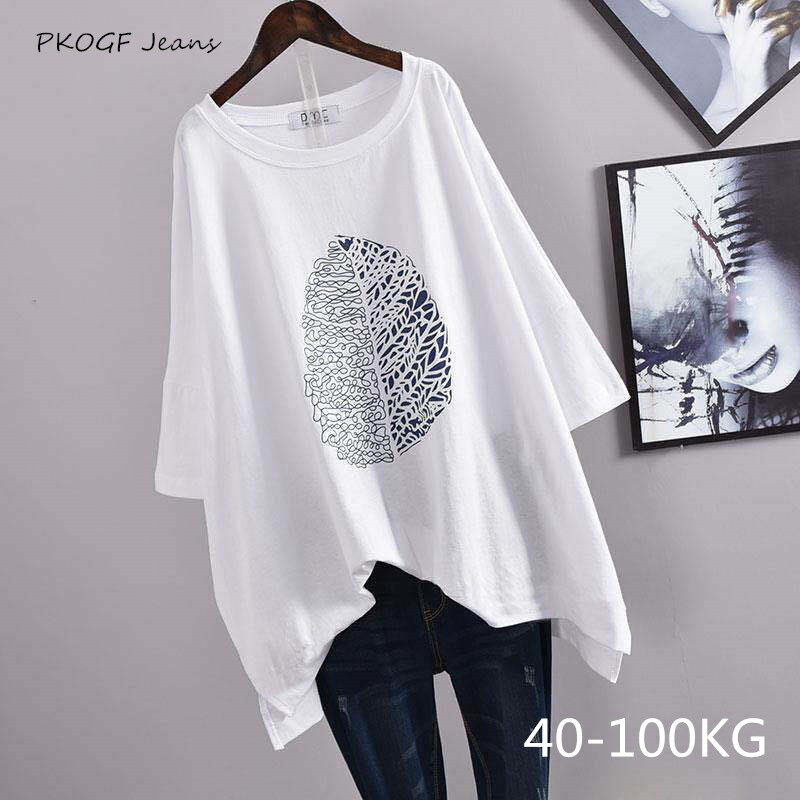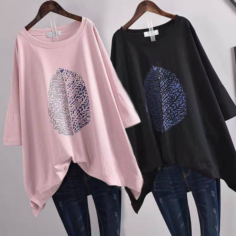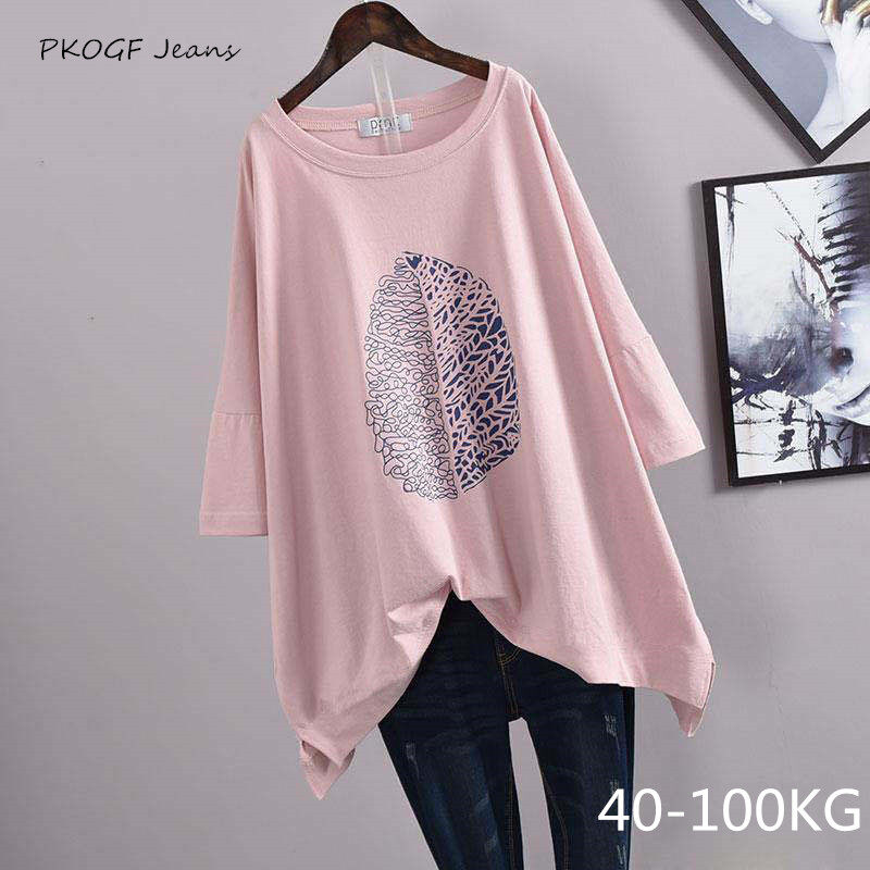 PKOGF Plus Size Women T-shirt Casual Loose Oversize Tops Slim Fit Fashion Print Pattern T-shirt(40-100KG)