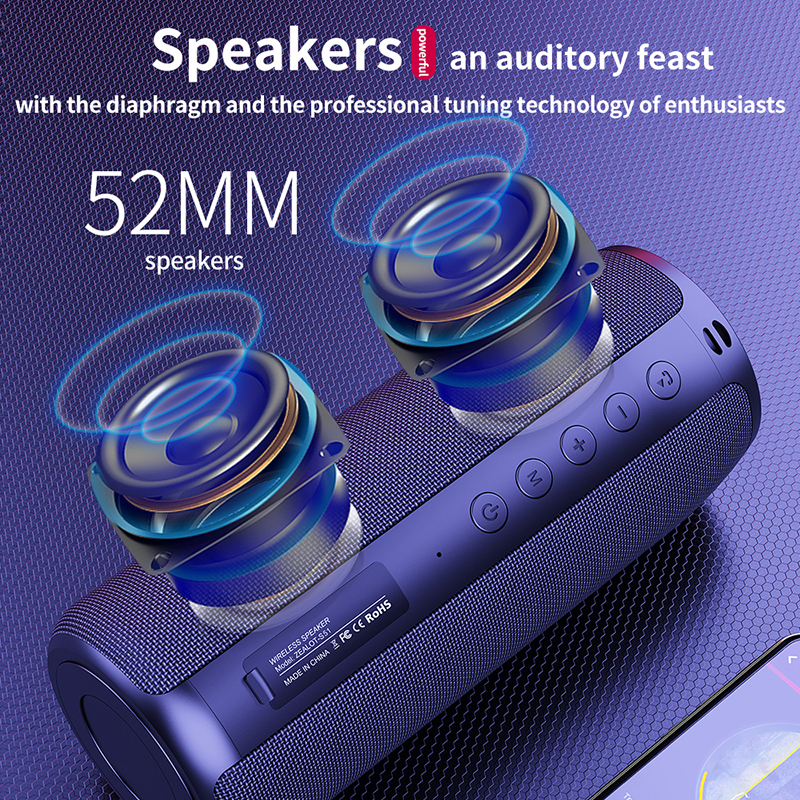 Product Specifications:Bluetooth Version: bluetooth 5.0Transmission Range: 10 to 15 metersRated Power: 5W X 2SNR: >=90dBFrequency: 100Hz-20KHzDistortion: < 1%Working Voltage: 3.7VCharing Voltage: DC 5VBattery Capacity: 2200mAhCharging Time: about 2.5 hoursPlayback Time: about 10 to 12 hoursStandby Time: >= 30 daysCharging Port: Micro USBMicro SD playback: supportAUX Line-in playback: supportUSB Flash Drive Disk Playback: supportSpeaker Dimensions: 75 x 75 x 185mmProduct Weight: about 500gWhat's in the box:1 x bluetooth speaker1 x charging cable1 x lanyard1 x user manual