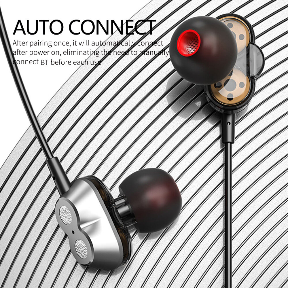 Lenovo HE08 BT 5.0 Neckband Wireless Headphone w/Dual Dynamic + 4 Speakers/Noise Reduction HiFi Stereo Earphone Waterproof Sport Magnetic Headset With Mic Compatible with iOS/Android