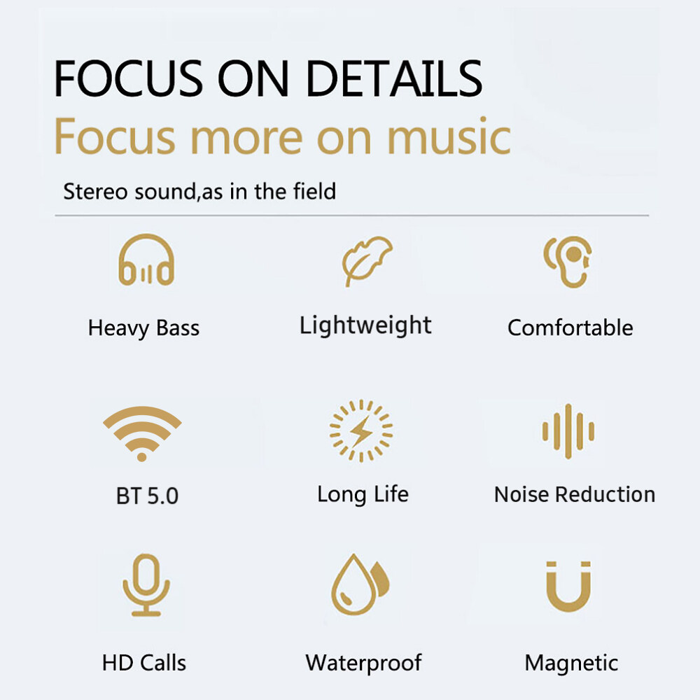 2.Features: Magnetic Design - The built-in magnet gives this BT headset neckband a convenient storage way to carry around when your earbuds not in use. Advanced BT 5.0 Connectivity - With the latest BT 5.0 technology, the BT neckband headphone offers enhanced sound transmission, faster pairing, more stable wireless connection. HD Stereo Sound - Dual moving coil plus 4 speakers bring you powerful sound and rich sound details. Noise Reduction - Effectively reduce the ambient noise making music and call more clear. Comfortable to Wear - Made of skin-friendly material, light in weight and with a ergonomic design for no-wearing feeling. Convenient to Use - Auto-pairing when you pick up, and the large battery capacity with low-consumption chip prevent from frequent charging. Waterproof - IPX5 Waterproof, well withstanding sweat and rain.