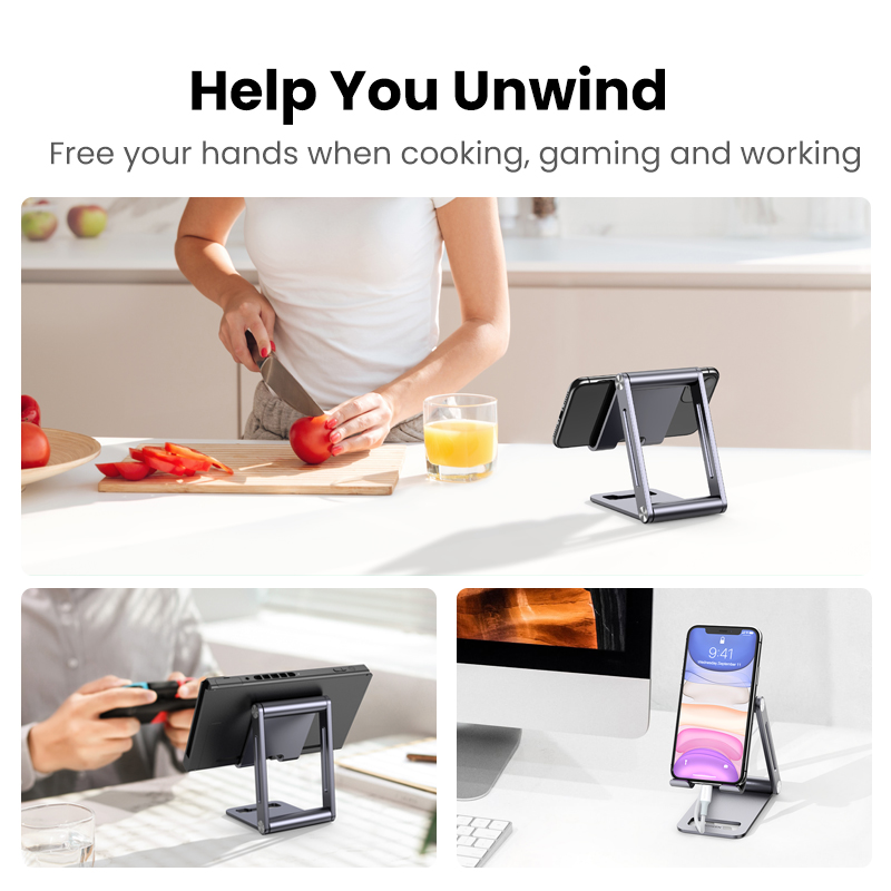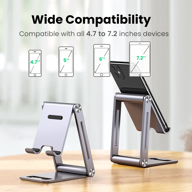 UGREEN Aluminum Phone Stand Cell Phone Adjustable Desk Phone Holder for iPad iPhone 12 Pro Max SE XR XS Samsung Galaxy S20 S10 S9 S8 S7 S6 for 4.7-7.9 Inch Phone