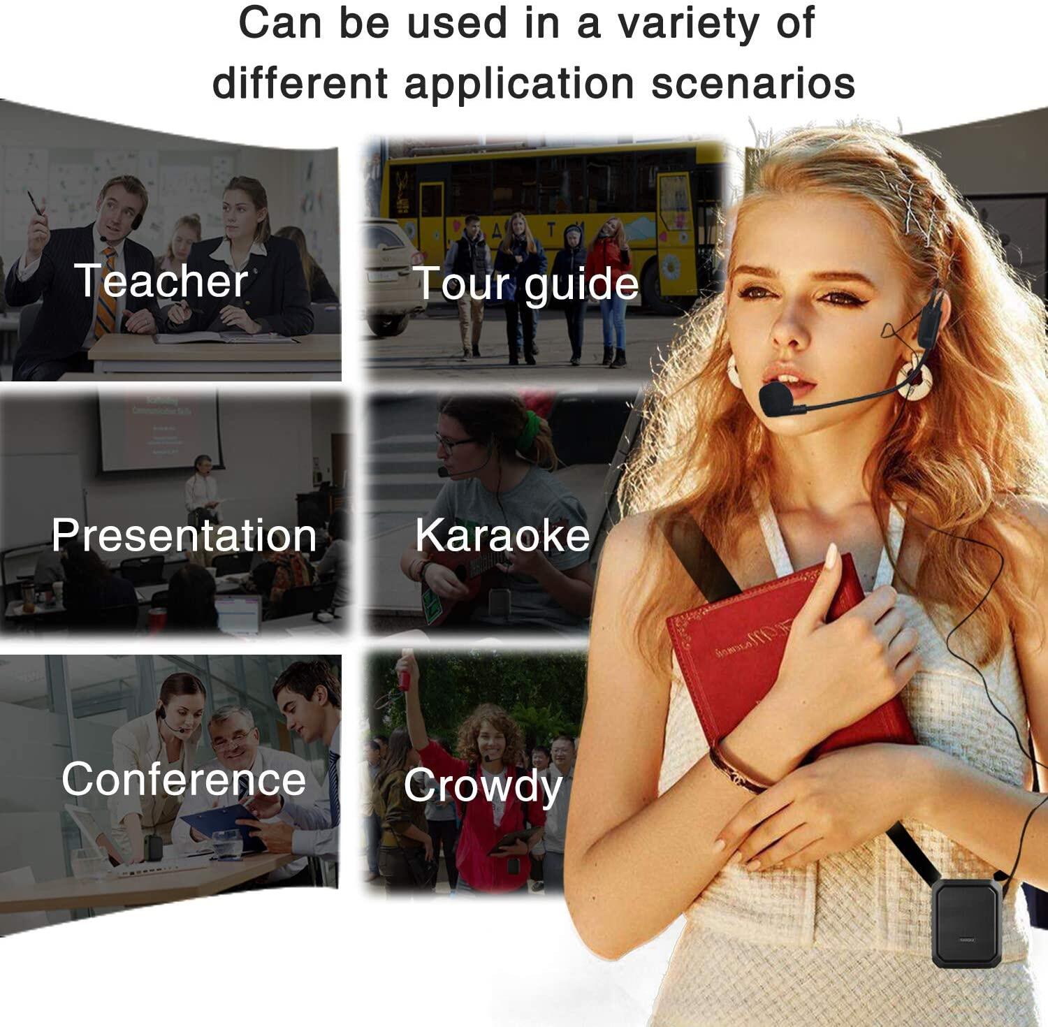 Voice Amplifier with Microphone Headset 18W Portable Bluetooth Speaker Megaphone Loudspeaker Voice Recording Clip Amp Power Bank Waterproof IPX5 for Outdoor, Shower, Teaching, Meeting, Training
