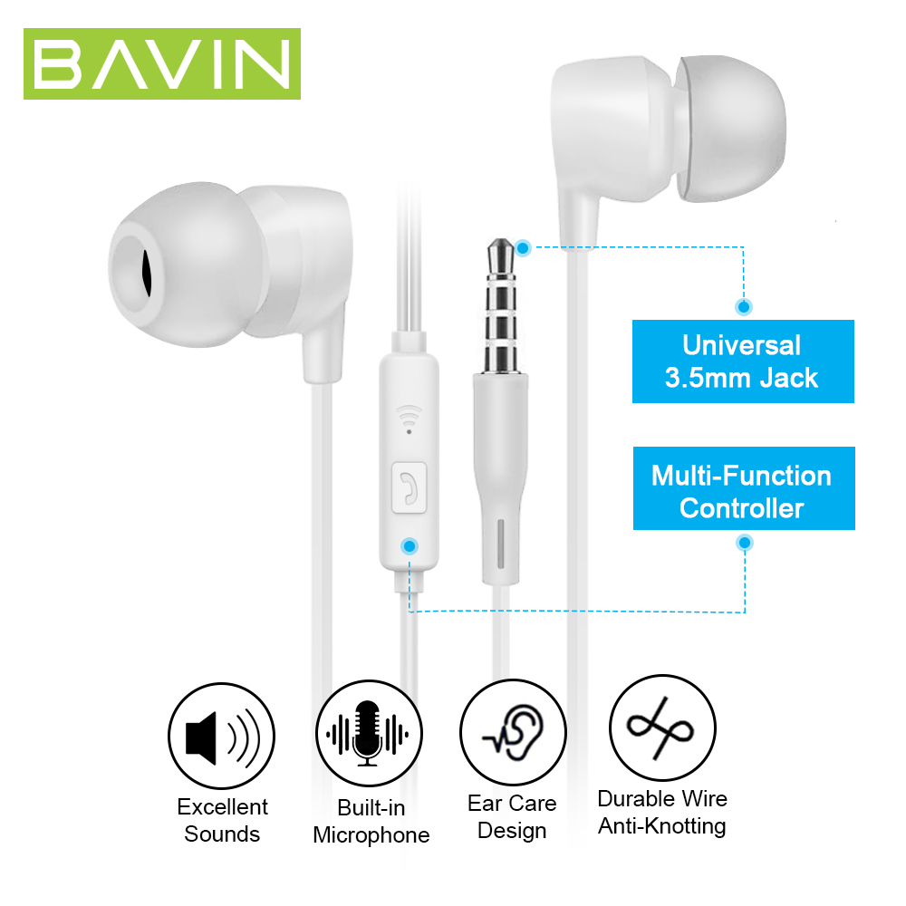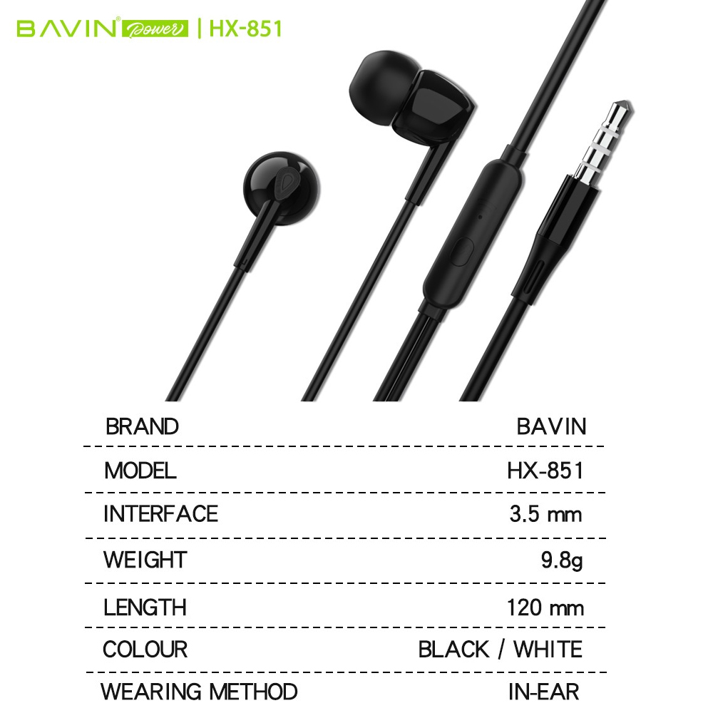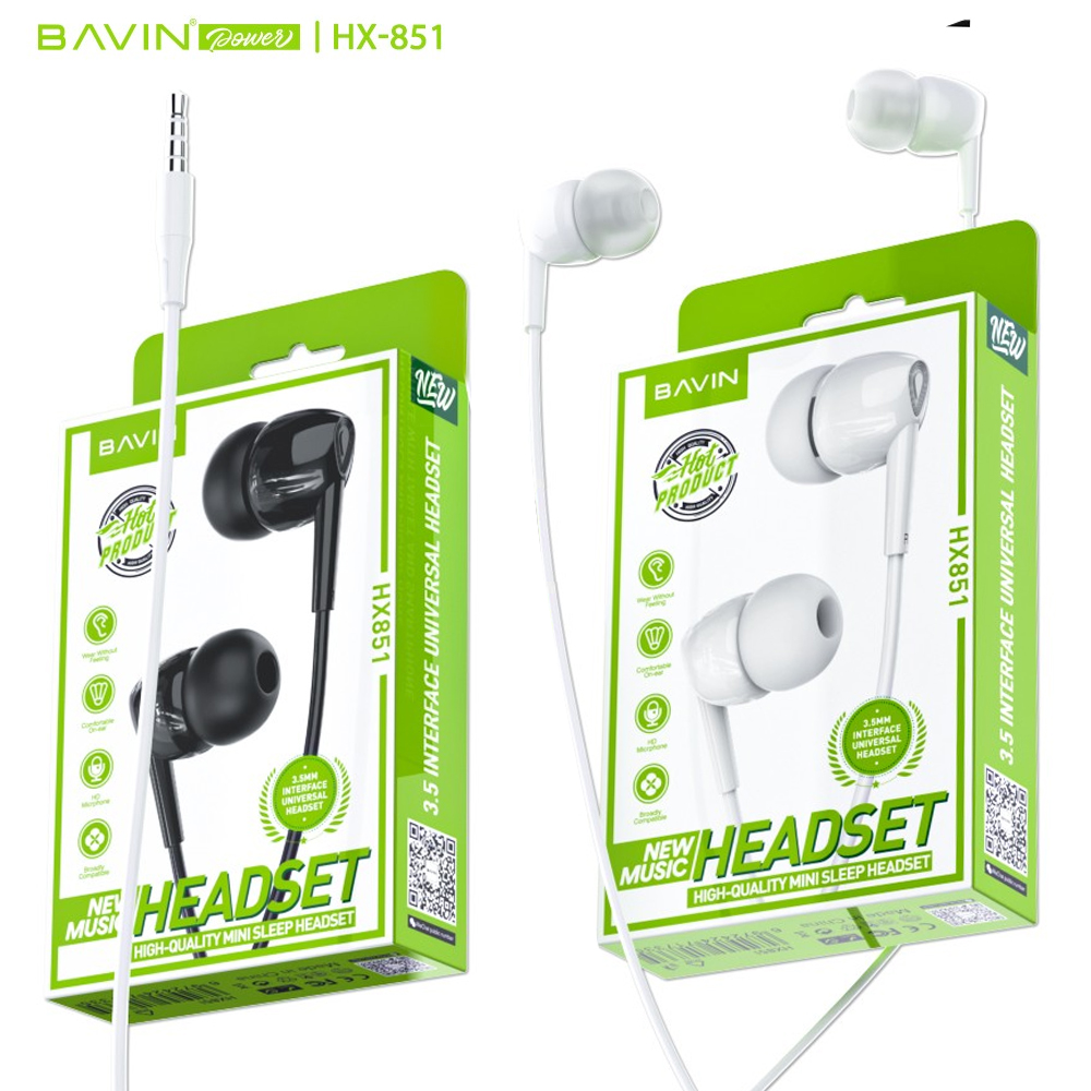 BAVIN HX851 high-quality, lightweight and fully compatible headphones Well-designed and exquisite boxed Made of selected light materials, no weight, you can wear it to sleep More reasonable engineering design, fits the inside of the ears better, and won’t be tired for a long time Clear vocals, surging bass, stable performance at maximum volume With high-definition noise reduction microphone, and fully compatible plug and play more convenient Color: black and white