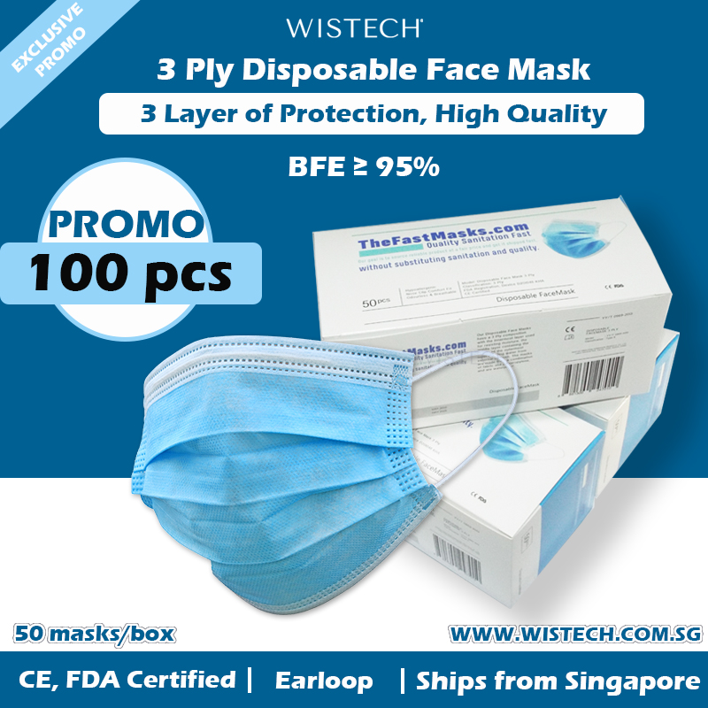 [EXCLUSIVE PROMO Singapore Ready Stock - 2 Boxes 100pcs ] 3 Ply Disposable Face MASK, TheFastMask, 50 pieces, FDA CE Approved, Medical Mask, Fast delivery, Delivery from Singapore , Blue/Pink/White