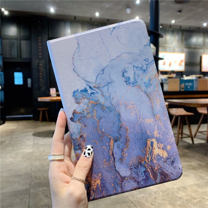 For Samsung Galaxy Tab A 10.1 2019 SM-T510 SM-T515 Hard Marble Pattern PC Cover Case+pen