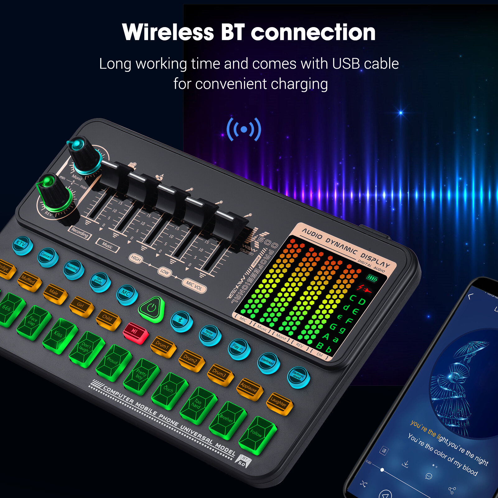 You can connect the sound card with your smartphone or computers via BT to p-lay accompaniment music, And the sound card can work with most mainstream live broadcast software also.