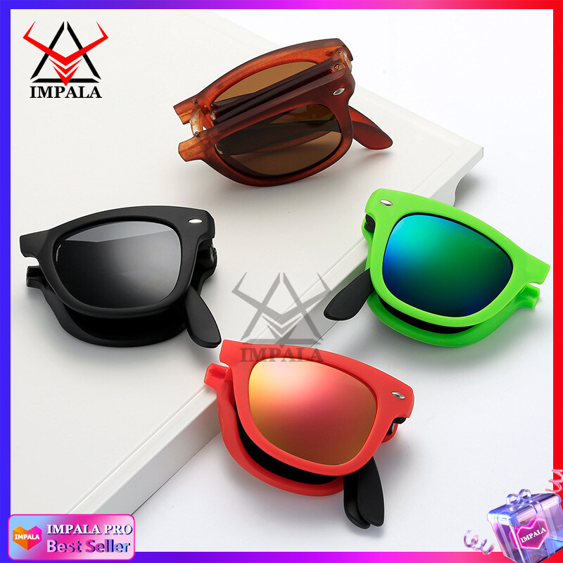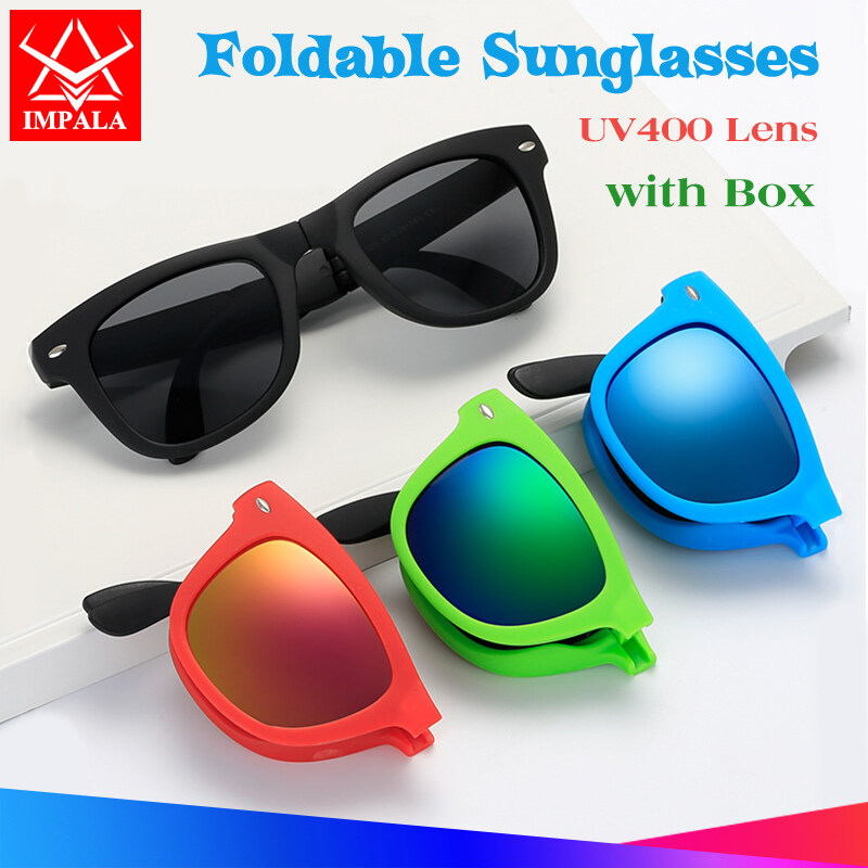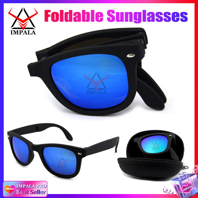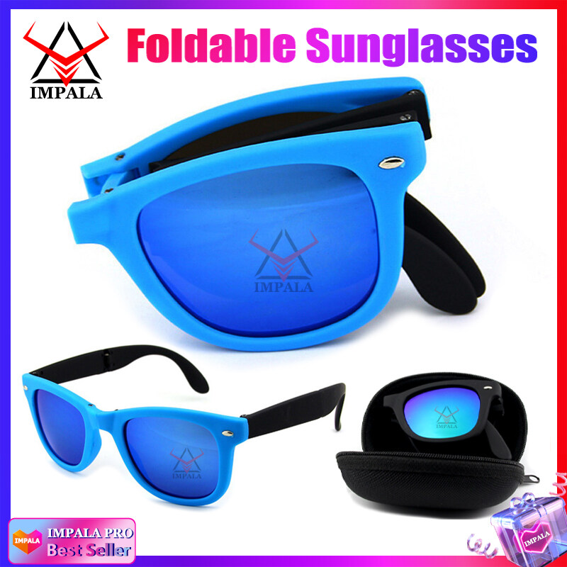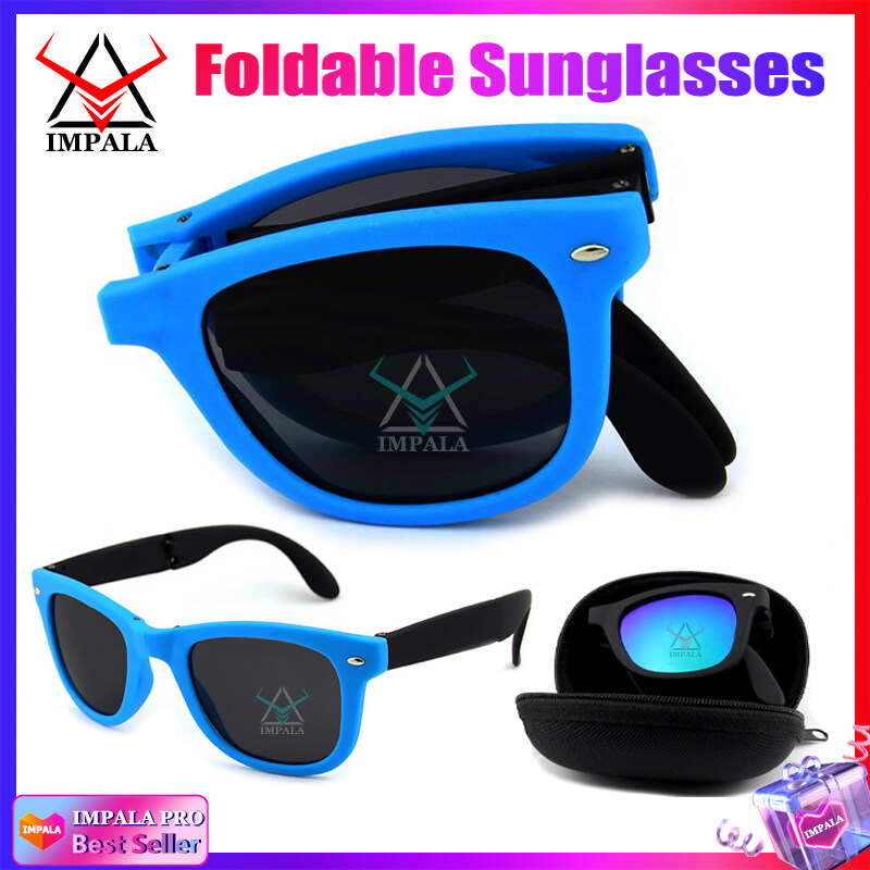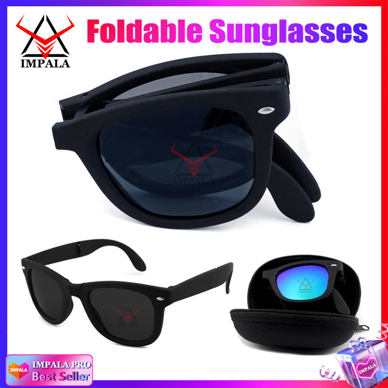 IMPALA QT116X Fashion Foldable Sunglasses for Men and Women Anti Glare Outdoor Sports Sun glasses Portable Glasses UV Protection Lens with Mini Eyewear Case