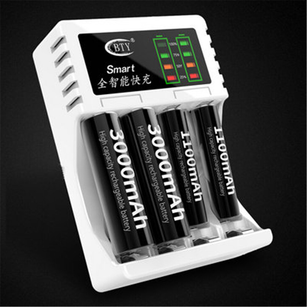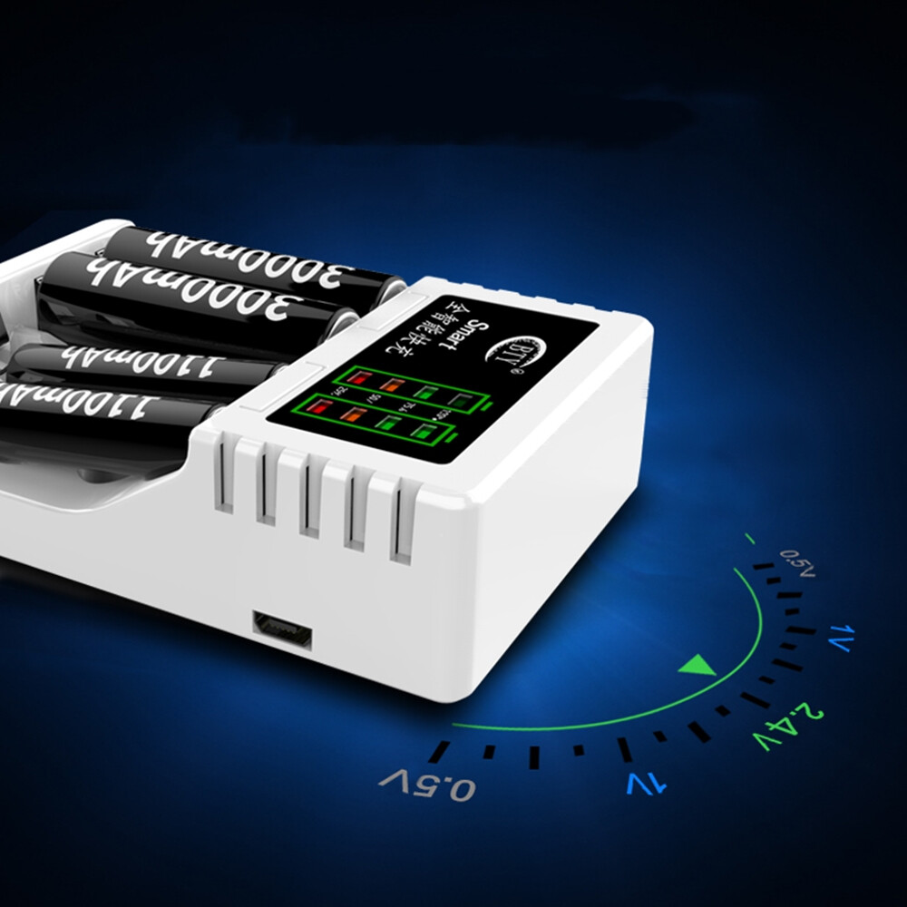 4 Slots LCD AA AAA Rechargeable Battery Charger For NIMH NICD Batteries white