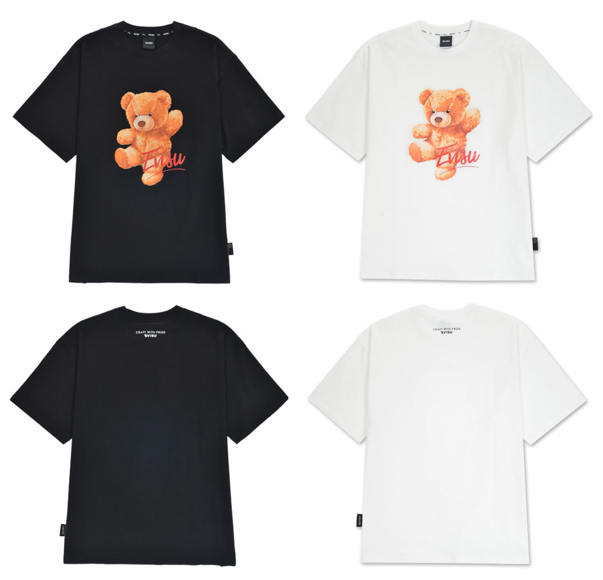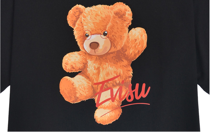 [EVISU KOREA] Overfit Teddy Bear Warrior Print Short-sleeve T-shirt Casual Men Women Tee Couple Tops Cotton Street Style Korean Style